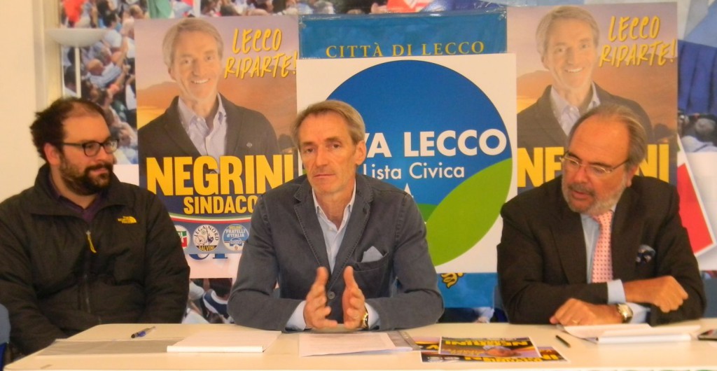 LECCO – Il candidato sindaco Alberto Negrini presenta “Viva Lecco Lista Civica”, il quarto simbolo della coalizione Forza Italia, Fratelli D’Italia-Alleanza Nazionale e Lega Nord, che lo sosterrà nella corsa elettorale a Palazzo Bovara.