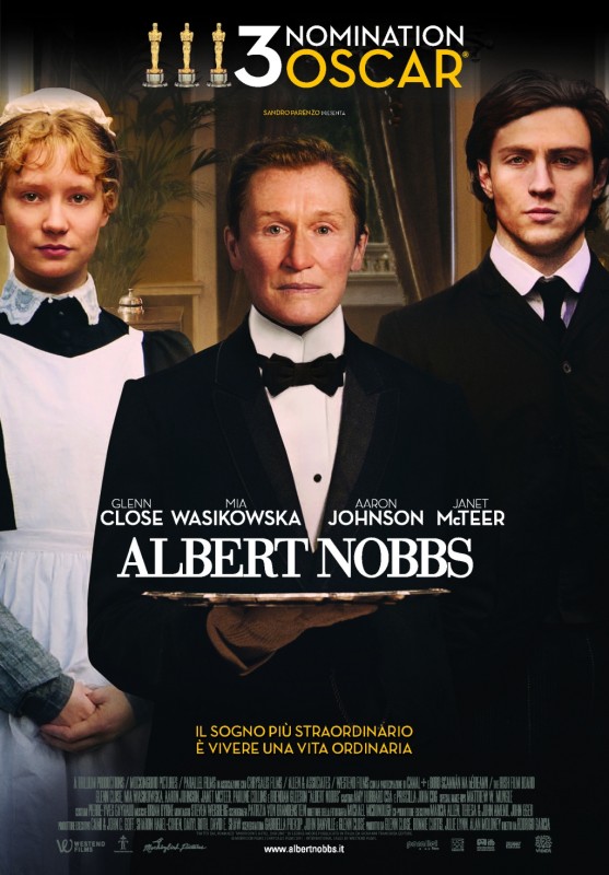 Trama. Irlanda del diciottesimo secolo. Albert Nobbs è il migliore dei camerieri che lavorano in un albergo di Dublino. La sua vita è totalmente dedicata a svolgere la sua professione il meglio possibile, in modo da poter guadagnare il denaro necessario per aprire in futuro una sua attività commerciale. Albert Nobbs ha però un segreto: è una donna. Quando nell’albergo arriva un pittore che deve imbiancare gli interni la sua copertura vacilla. Proprio nel momento di massima difficoltà Nobbs scopre una persona in grado di capire il suo segreto e di aiutarla a sopportare la frustrazione e il dolore di una condizione così disperata. Rinfrancata da questa nuova amicizia la donna può dedicarsi più serena a costruire il proprio futuro.