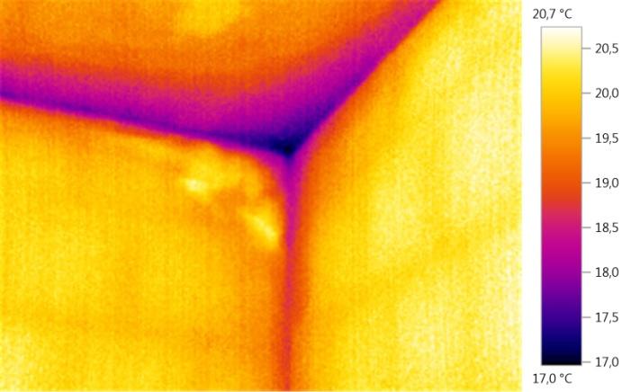 Grazie alla termografia è possibile individuare zone con presenza di eccessiva umidità e quindi prevenire la formazione di condense, muffe o permettendo di intervenire in via risolutiva.