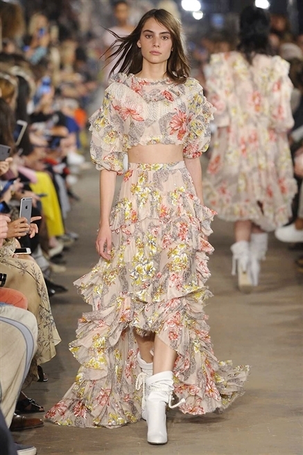 Stampa su stampa: oltre ai fiori (tanti fiori, dovunque) anche le stelle, le fantasie stile tappezzeria, e soprattutto coloratissime stampe tropicali come foglie di banana, palme, filodendro, hibiscus, la nuova personalità, i tessuti stampati, la riscoprono mescolati tra loro, due, tre o anche 4 stampe diverse nello stesso outfit. Sulle passerelle di Stella Jean, Valentino, Thom Browne, Prada, Gucci.