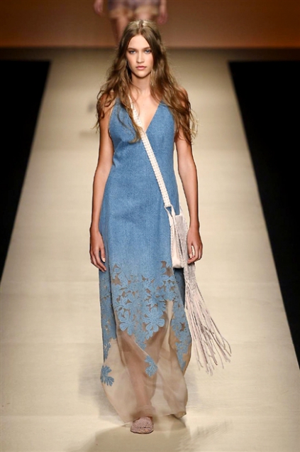 Lo stile fine anni 60/70, ormai da qualche stagione a questa parte, si impone sempre più prepotentemente sulle passerelle milanesi, dove ammiriamo tantissimi capi in suede, i poncho, le maxi gonne, gli abiti lunghi, le coroncine di fiori, le fantasie flower power , gli outfit d’ispirazione Woodstock e frange, tante frange ovunque, su abiti ed accessori. Lo abbiamo visto da Etro, Blugirl, Alberta Ferretti, Valentino, Emilio Pucci e tanti altri ancora.