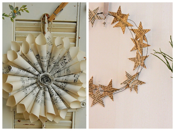 Cilindri di carta (pagine di libri, pentagrammi, quotidiani) o fil di ferro e stelle applicate.