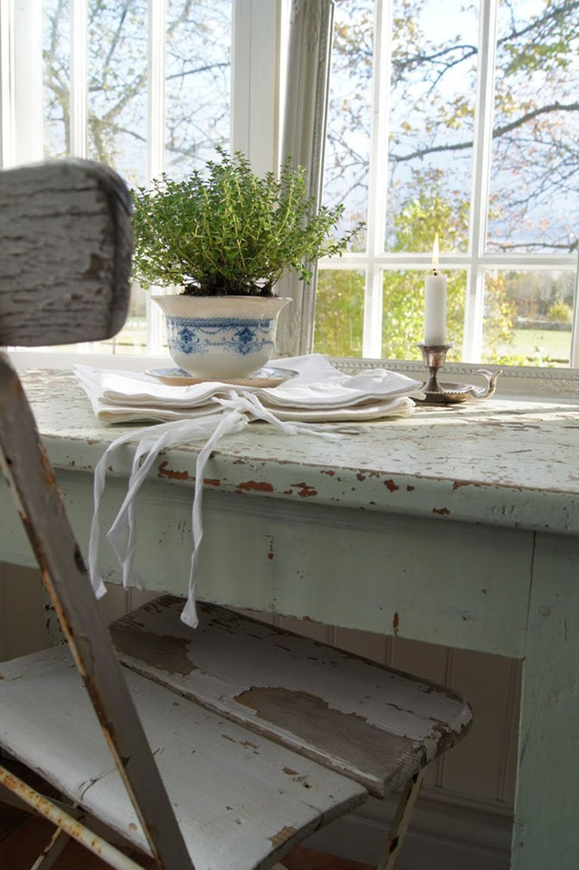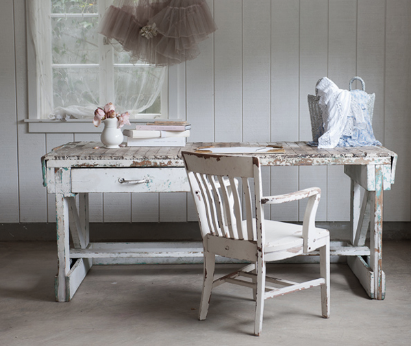 E’ uno stile romantico che ha il sapore della semplicità degli oggetti vissuti. E’ grazioso, elegante ma senza strafare. Uno stile consumato dal tempo. Uno stile pratico. Uno dei trucchi per entrare in pieno nello stile sta nel dare una nuova funzione o un nuovo alloggio all’oggetto di uso comune. Ad esempio la specchiera di un comò importante una volta ripulita, può essere messa in bagno, appesa sopra ad un lavandino semplice, creando così un’ambiente particolare e personale, una vecchia vetrinetta che in origine conteneva le porcellane più delicate, può trasferirsi in camera da letto, trasformandosi in una scarpiera.
