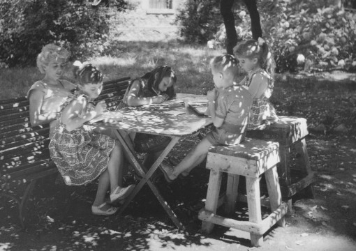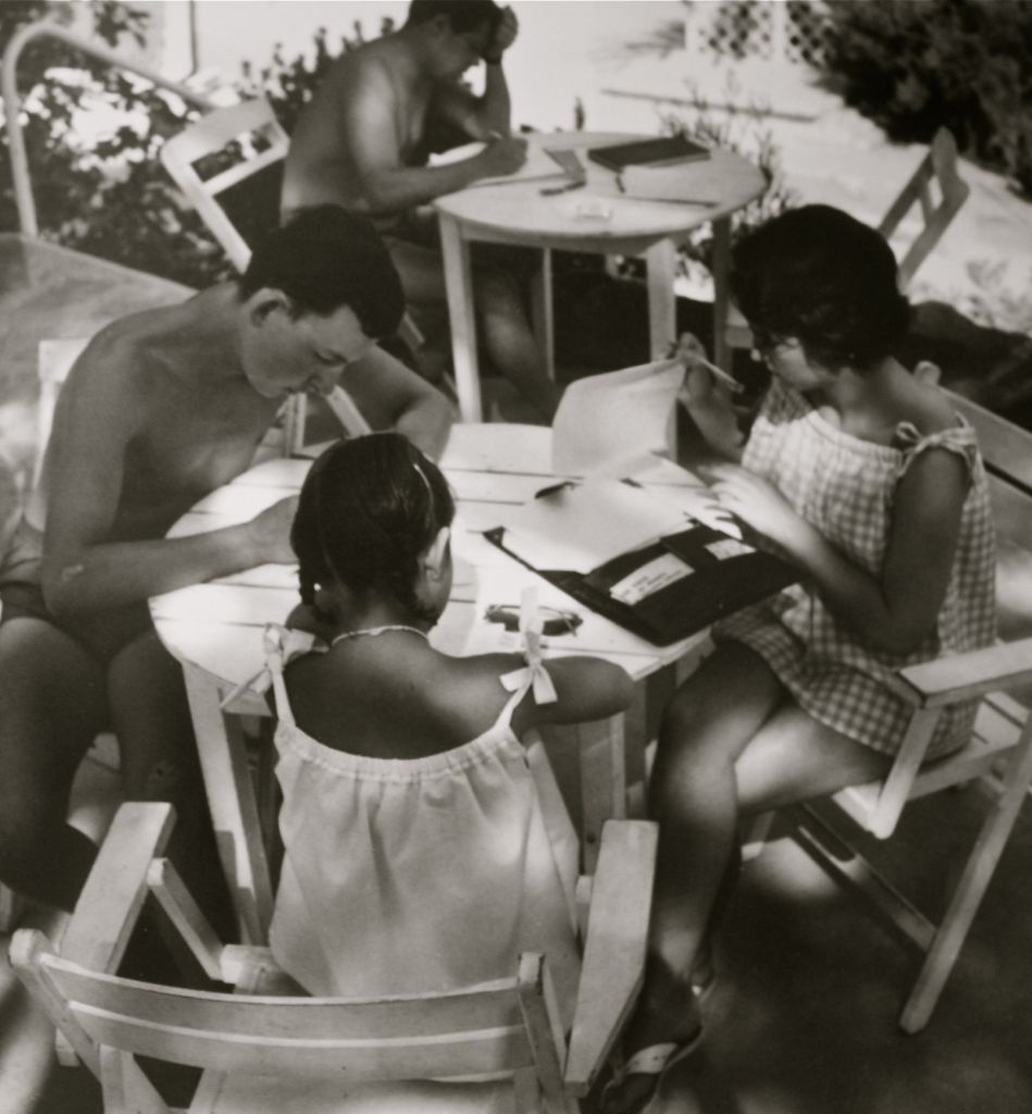 Compiti delle vacanze a Joyeuse, Ardéche, Agosto 1953