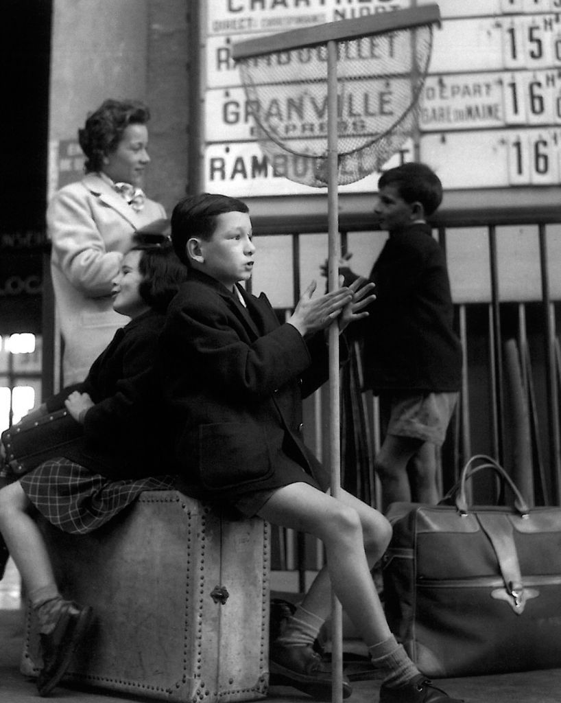 “Doisneau e la sua Pierrette avevano inventato un gioco avvincente: tenere segreto il luogo dove avremmo passato le vacanze. Segreto di stato per tutto l’anno e fino alla fine del viaggio. Partivamo in due famiglie, con due macchine. Solo uno dei quattro adulti conosceva la destinazione. Il giorno della partenza quello che guidava la seconda macchina riceveva una busta in cui doveva distruggere il contenuto dopo averne preso conoscenza, come nei film. Quando Doisneau era alla guida della spedizione, faceva più volte il giro della circonvallazione in modo che fino all’ultimo i bambini si domandassero da quale porta di Parigi sarebbero usciti… e ogni anno era diversa. Un gioco che metteva Annette e Francine in uno stato di agitazione permanente: “Dove andiamo questa estate?” “Dai, su dove andiamo?…”. I marmocchi chiedevano, perlustravano, cercavano un indizio, tenevano d’occhio le caselle della posta degli uni e degli altri, ma niente da fare: i grandi arrivavano al punto di farsi spedire la prenotazione al fermo posta. Un vero e proprio gioco, per tutti quanti- compresa l’impiegata dell’ufficio postale numero 13 che strizzava l’occhio tenendo il plico ultra segreto attraverso lo sportello: “Ecco qua una bella lettera per il signor Doisneau! Lei fa Robert di nome, vero? Allora è per lei: viene dalla Bretagna.”