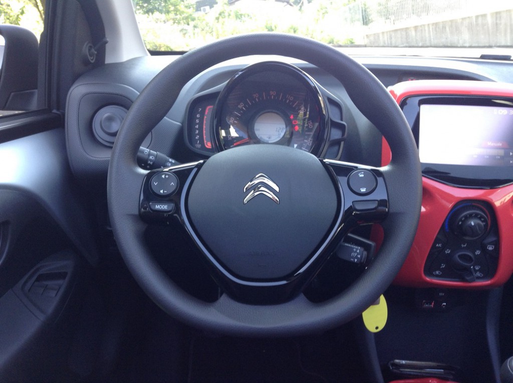 Anche all’interno la plancia e la sua ergonomia cambiano radicalmente ma rimane fedele il punto di contatto con la progenitrice. Ovviamente stiamo parlando dello stile giovanile che è ed è stato, un punto di forza di questa vettura. La console centrale con colore a contrasto, il volante dall’ottimo disegno e la strumentazione rinnovata sono elementi ben riusciti mentre alcune plastiche sono di fattura un po economica. Cresce lo spazio interno generale anche per i passeggeri posteriori e rimane comunque ottima anche la disponibilità del bagagliaio posteriore.Dal punto di vista tecnologico anche la nuova C1 introduce novità interessanti. Nel display touch screen da 7 pollici posizionato al centro della plancia è possibile selezionare le funzioni multimediali principali con la possibilità di ‘specchiare’ il navigatore satellitare direttamente dal proprio smartphone. In pratica si collega il telefono all’auto con un cavo e si utilizza direttamente il sistema di navigazione del telefono dal display in plancia.un’ottima pensata.