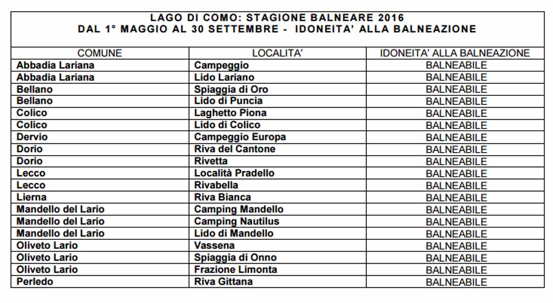 LECCO – Tutte balneabili le località lecchesi monitorate dall’azienda sanitaria: gli esiti analitici dei campionamenti effettuati il 7 giugno sono risultati favorevoli, sia per i parametri microbiologici, sia per quelli algali (cianobatteri).