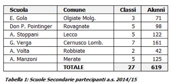 In totale hanno partecipato al progetto 27 classi, corrispondenti a 619 ragazzi coinvolti di cui 296 (48%) erano maschi e 323 (52%) femmine. Si trattava in maggioranza di classi seconde della scuola secondaria (20 classi) mentre solo 7 erano le classi prime. L’età media era di 11,7 anni.