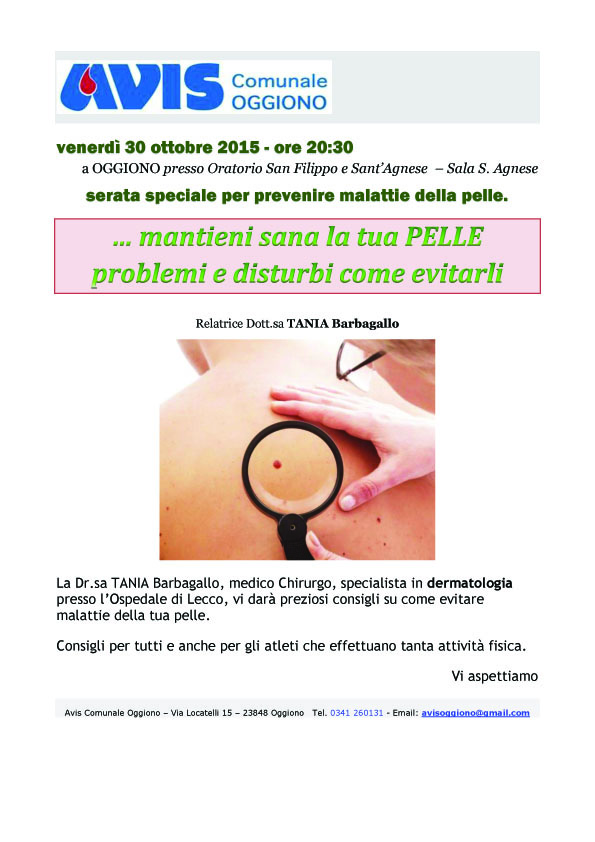 Prevenire le malattie della pelle, serata con l’AVIS a Oggiono