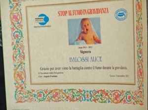 Testimoni del successo della campagna sono i genitori della piccola Sofia, Diego e Cristina, che hanno smesso entrambi di fumare appena scoperto il lieto evento. A loro è andato un attestato speciale, consegnato dal Cav. Fontana insieme al direttore sanitario, Patrizia Monti: