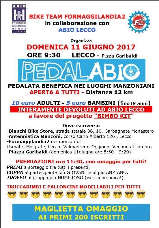 Nasce dalla collaborazione tra il Bike Team Formaggilandia2 Malgrate e l’associazione ABIO Lecco (Associazione Bambino In Ospedale), la prima edizione della “PedalABIO – Pedalata benefica nei luoghi Manzoniani”.