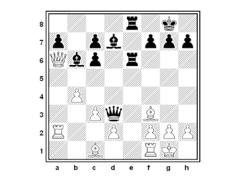 17…Dxf3! Un sensazionale sacrificio basato su un approfondito calcolo posizionale 18. gxf3 Tg6+ 19. Rh1 Ah3 20. Td1 Ag2+ 21. Rg1 Axf3+ 22. Rf1 Ag2+ 23. Rg1 Ah3+ 24. Rh1 Axf2 25. Df1 Axf1 26. Txf1 Te2 27. Ta1 Th6 28. d4 Ae3 29. Paulsen abbandona e anch’io ho finito gli aggettivi!