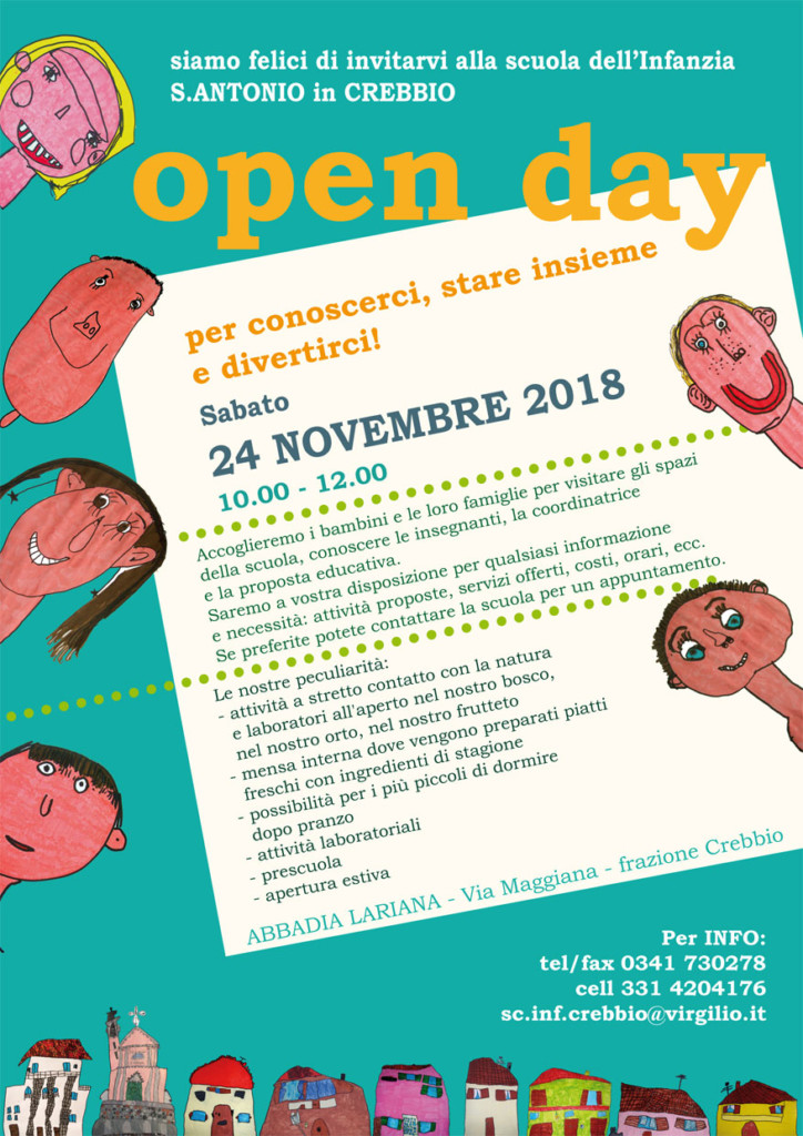 ABBADIA – Sabato 24 novembre la Scuola dell’Infanzia S.Antonio di Crebbio, in via per Maggiana, apre le porte ai bimbi e alle famiglie.