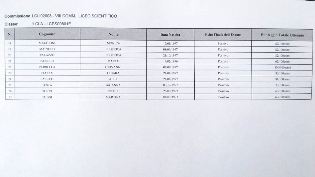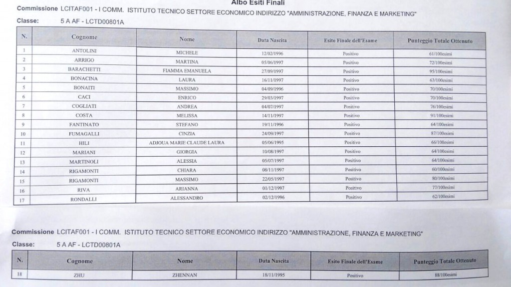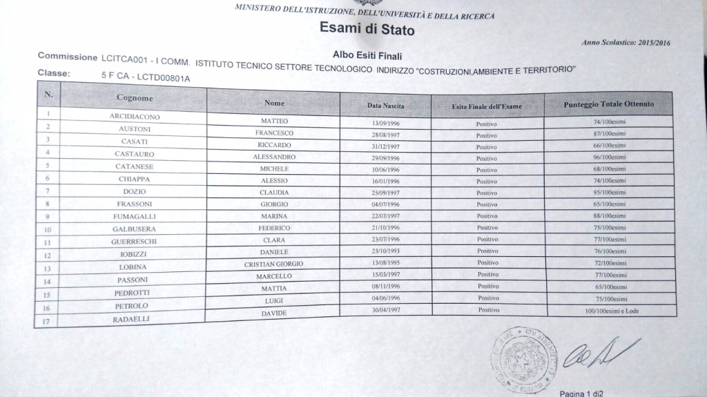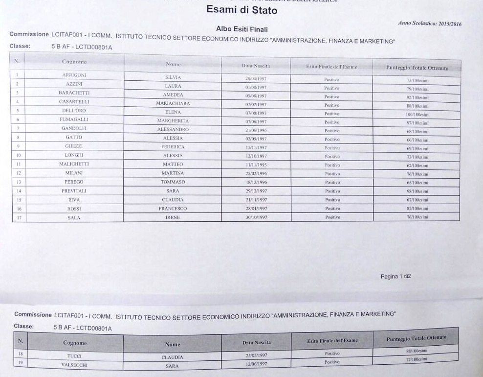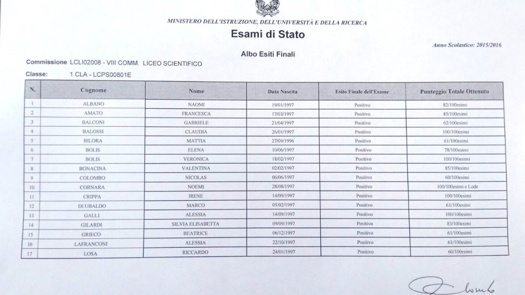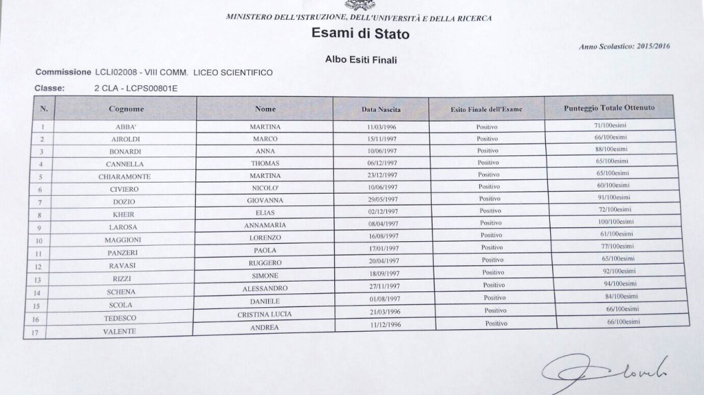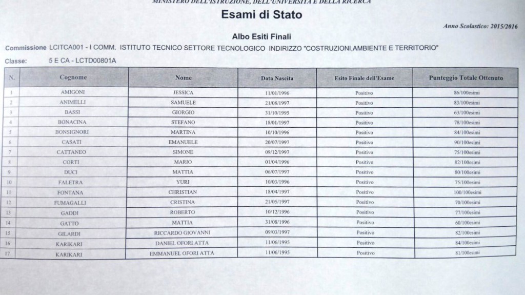 CALOLZIO – Una chiusura davvero in bellezza per l’istituto superiore calolziese Lorenzo Rota, dove proprio oggi sono stati esposti gli ultimi tabelloni, che vedono fra i voti di maturità ben dieci 100, di cui 2 con lode, sette al liceo scientifico, due per l’indirizzo costruzione ambiente e territorio ed uno per amministrazione finanza e marketing. Grande la soddisfazione per la preside Daniela Frittitta, “bravi i ragazzi, ed ennesima dimostrazione del pregio dell’istituto”.