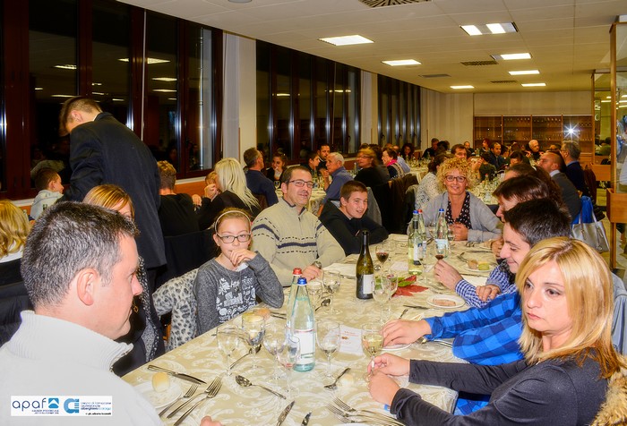 Oltre 200 persone hanno partecipato alla cena con gli ospiti francesi, aperta anche ai genitori degli alunni delle classi quinta A e B e prima A del CFPA di Casargo, alla presenza del Prefetto di Lecco Liliana Baccari, del presidente di APAF Nunzio Marcelli, dei componenti del Cda Pina Scarpa e Diego Combi, del direttore Marco Cimino.