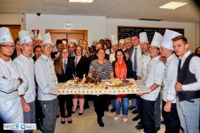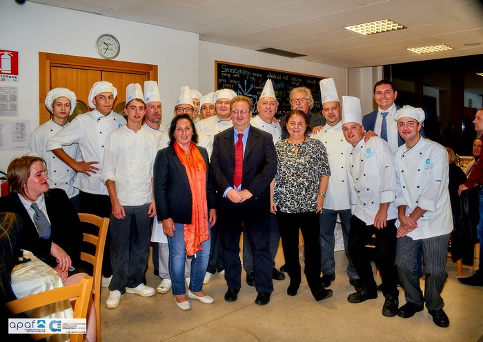 “Molta emozione da parte dei primini al loro esordio davanti ai genitori e agli ospiti – commenta il presidente di APAF Nunzio Marcelli – Come sempre docenti e allievi hanno svolto un ottimo lavoro, molto apprezzato dagli ospiti francesi e sottolineato da uno scrosciante applauso finale alla brigata di sala, cucina e pasticceria. Agli amici francesi abbiamo consegnato una targa per suggellare il nostro accordo di partenariato, con un caloroso saluto da parte dei presenti e del Prefetto di Lecco”.