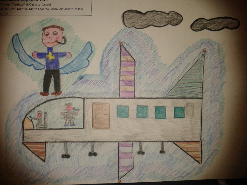 20150106_195932“Dopo aver riflettuto insieme in classe sulla necessità e sull’importanza di avere forze dell’ordine e sistemi di controllo per sconfiggere qualsiasi forma di criminalità e terrorismo – spiega dalla scuola Anna Clara Bassani – gli alunni hanno disegnato situazioni di pericolo dove in alcune era palese l’intervento delle forze dell’ordine e in altre dove la tranquillità del quotidiano era salvaguardata da mezzi e militari “invisibili” . I ragazzi hanno quindi disegnato “l’Intelligence” come militari appoggiati sulle ali degli aerei, angeli accanto ai bambini che vanno a scuola tra lupi, soldati nascosti tra gli alberi per proteggere il Papa, occhi che scrutano dagli elicotteri”.
