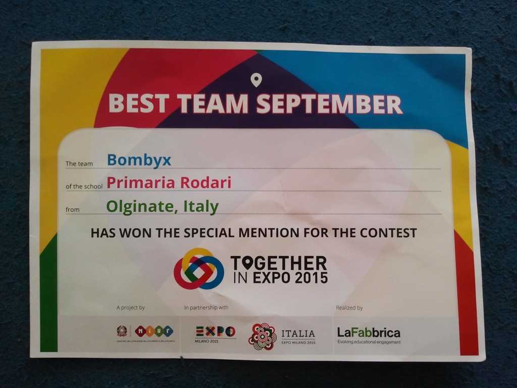 OLGINATE – Grande soddisfazione per la classe 5^ B della Scuola Primaria “G. Rodari” di Olginate, che ha ricevuto a Expo il prestigoso attestato di vittoria al concorso internazionale “Together In Expo” indetto dal Ministero dell’Istruzione, dell’Università e della Ricerca.