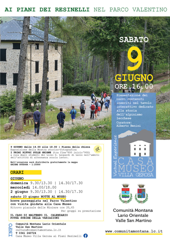 RESINELLI – Sabato 9 giugno il Liceo Classico, Scientifico e Scientifico delle Scienze Applicate G.Leopardi dà appuntamento a tutti in Piazza della Chiesa ai Piani Resinelli per la presentazione della mostra Fotografica “I primi rifugi sulle Grigne tra fine ‘800 e inizio ‘900”.