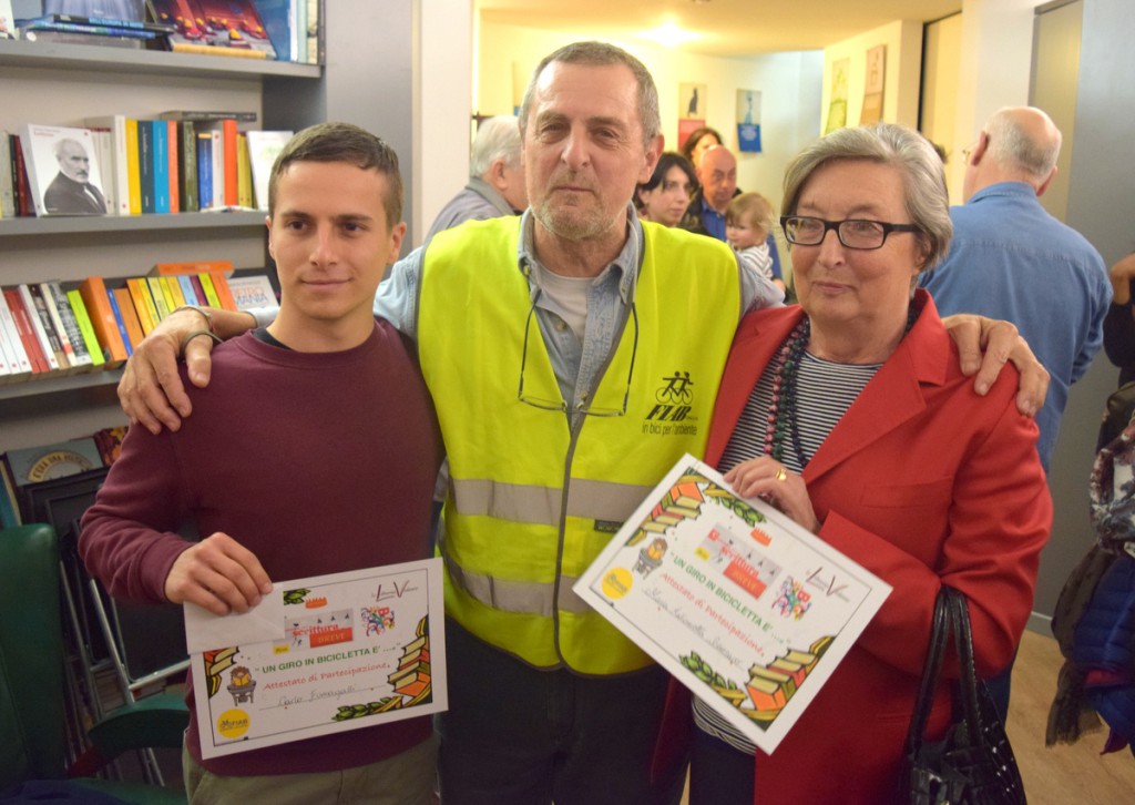 Tra gli applausi di insegnanti, compagni e dei rappresentati della Fiab, sono saliti sul podio gli alunni Michael Santoro, Celeste Friso e Matteo Perego.