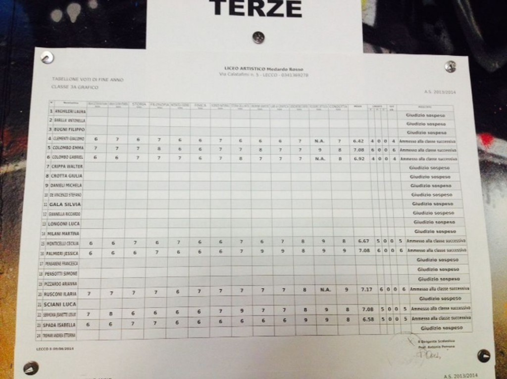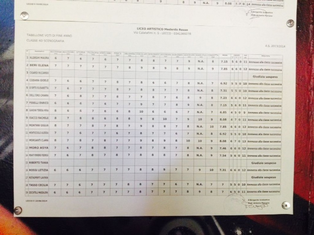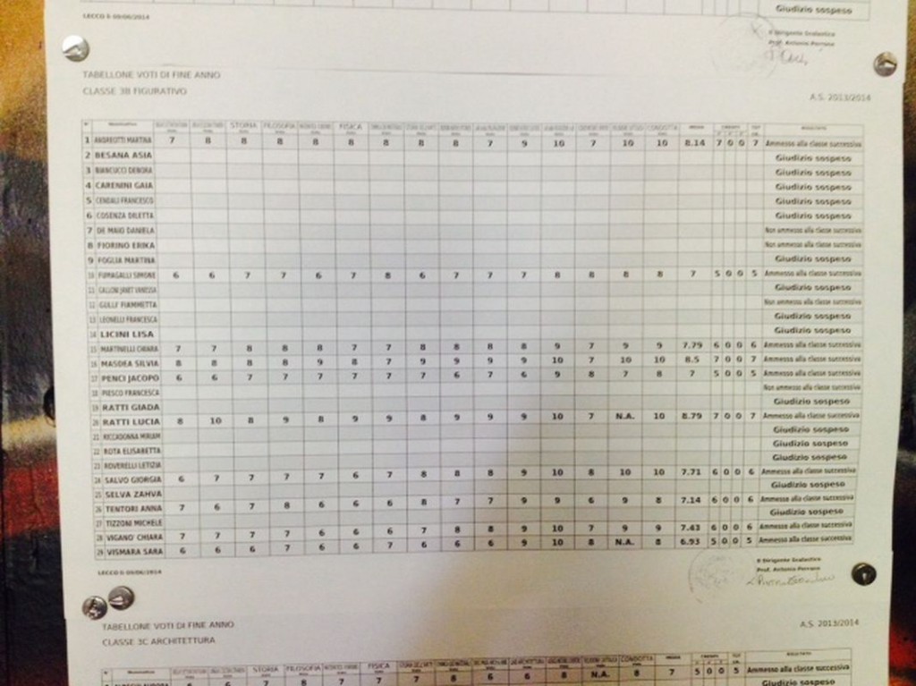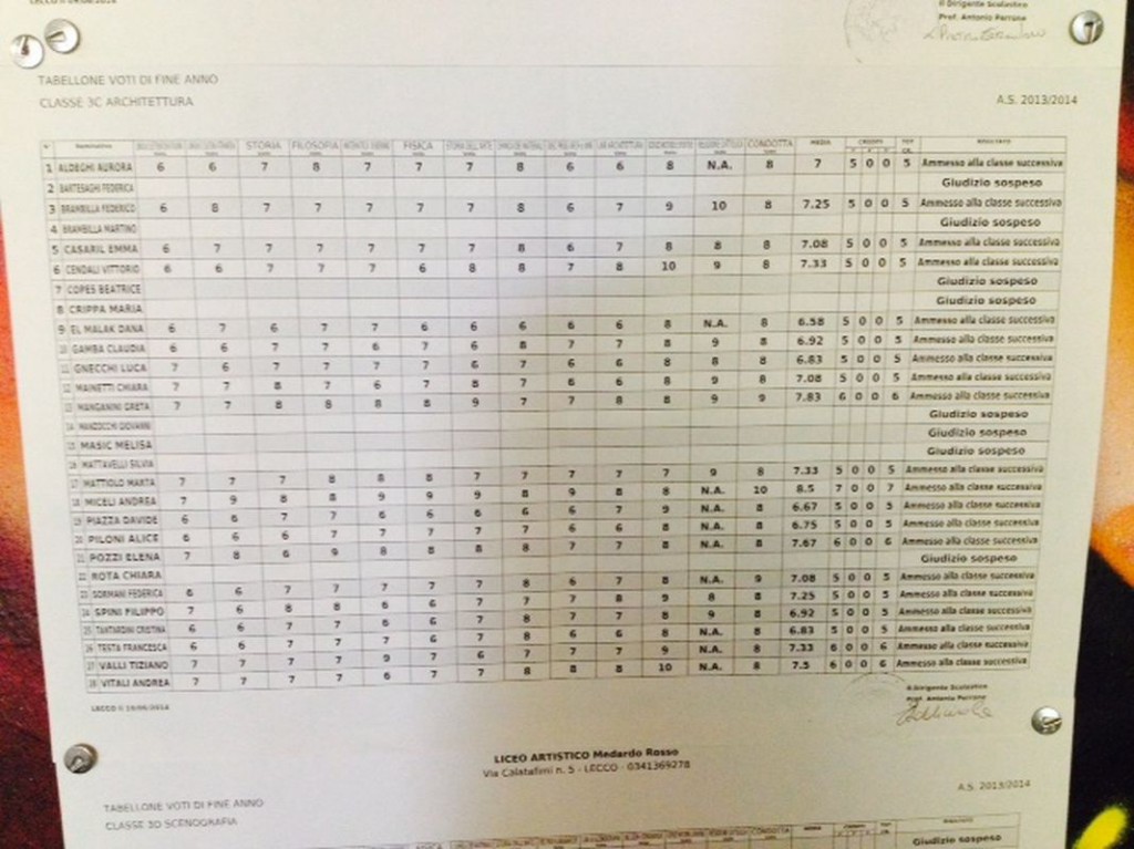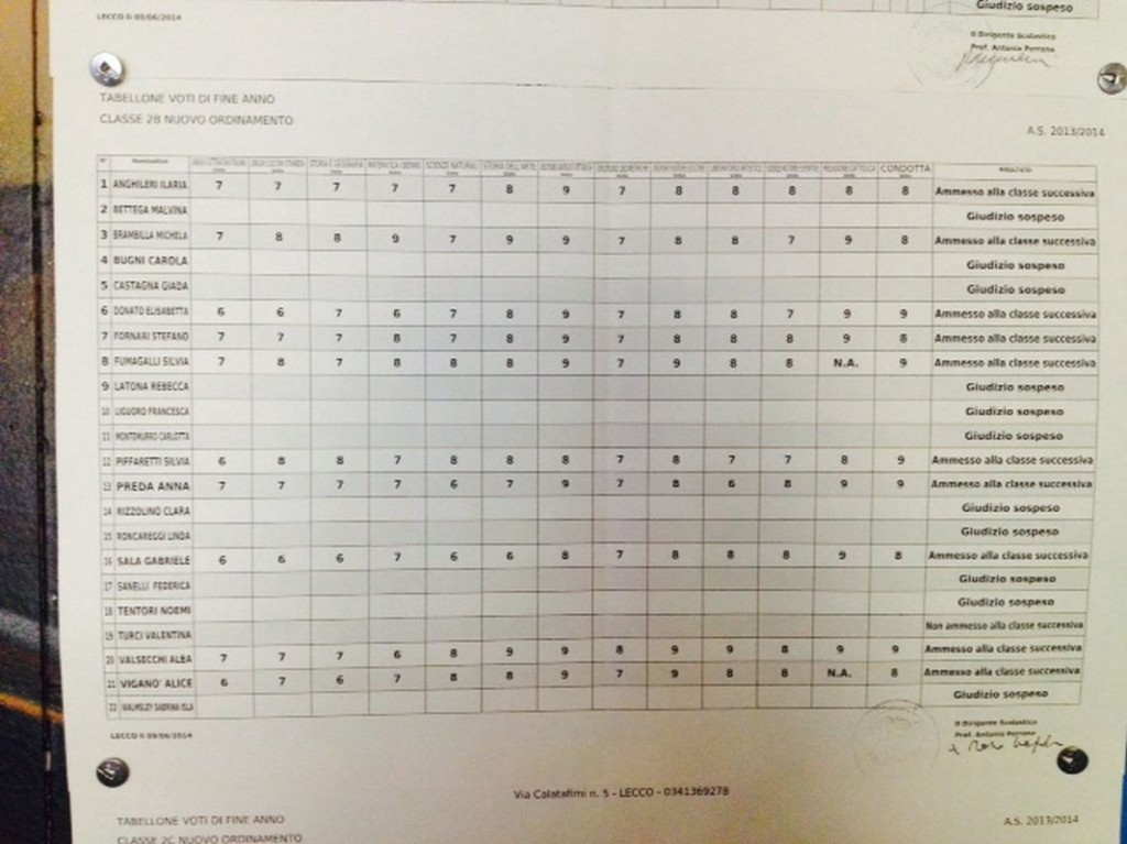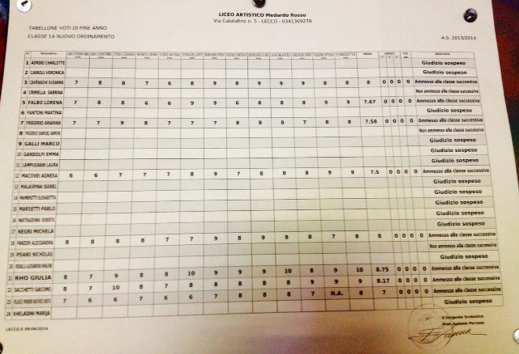 LECCO – È tempo di scrutini per gli studenti delle scuole superiori lecchesi: i primi quadri esposti hanno interessato gli studenti del Liceo Artistico Medardo Rosso, seguiti da quelli del Liceo Scientifico,di cui pubblichiamo gli esiti. Cliccando sulla classe comparirà il relativo tabellone.