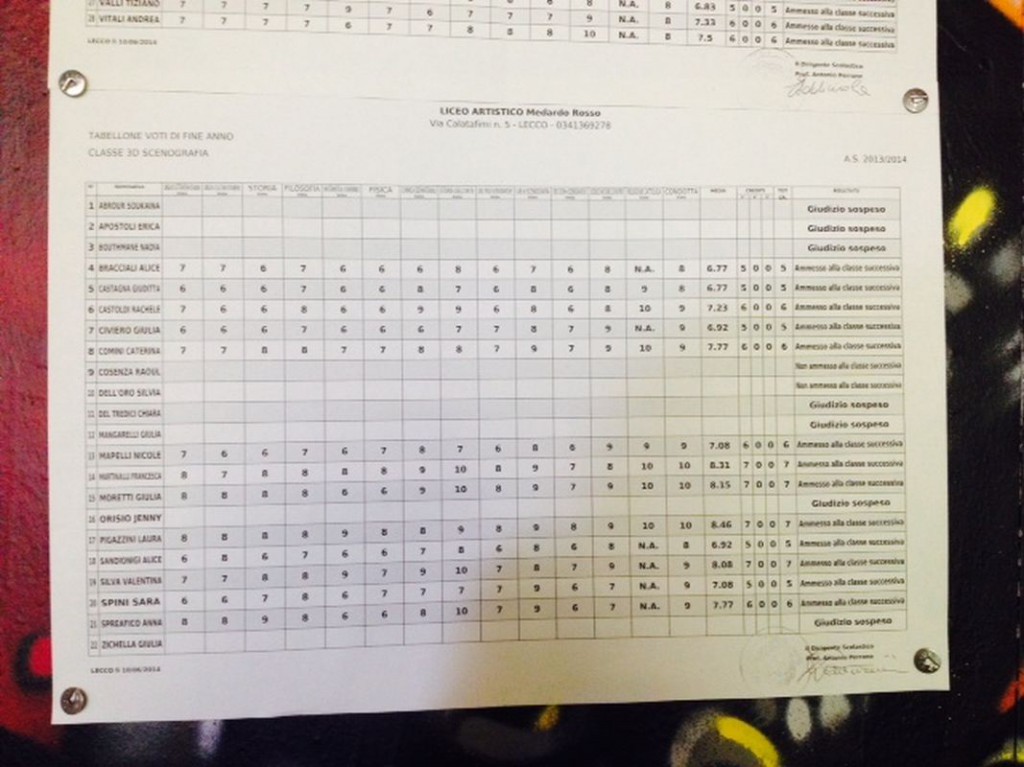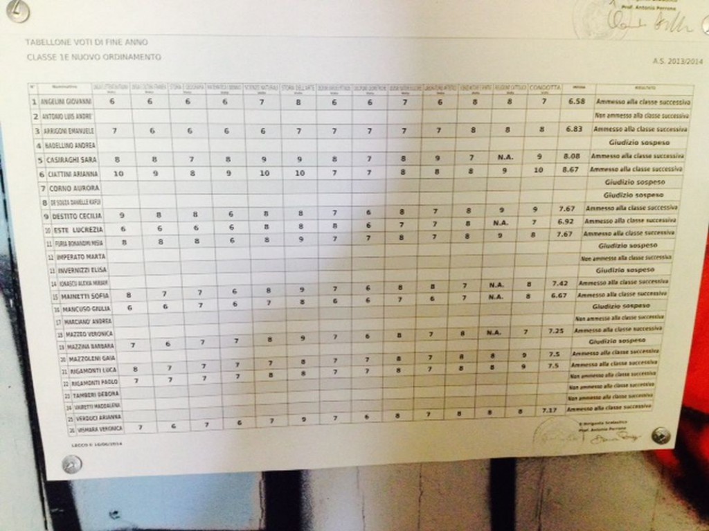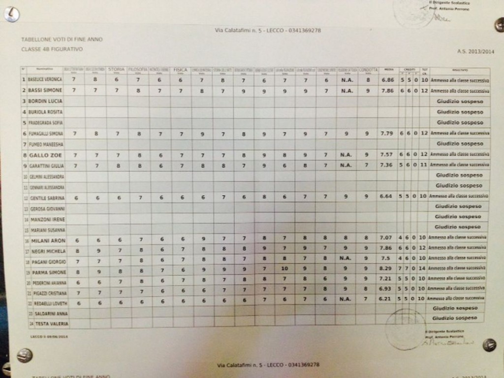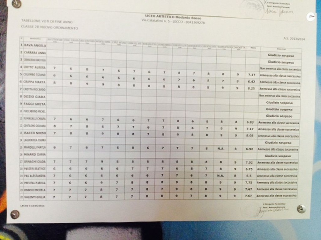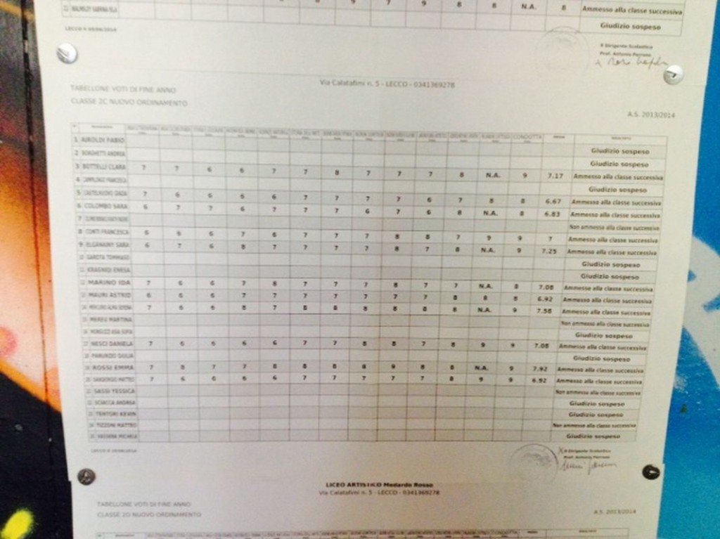 LECCO – È tempo di scrutini per gli studenti delle scuole superiori lecchesi: i primi quadri esposti hanno interessato gli studenti del Liceo Artistico Medardo Rosso, seguiti da quelli del Liceo Scientifico,di cui pubblichiamo gli esiti. Cliccando sulla classe comparirà il relativo tabellone.