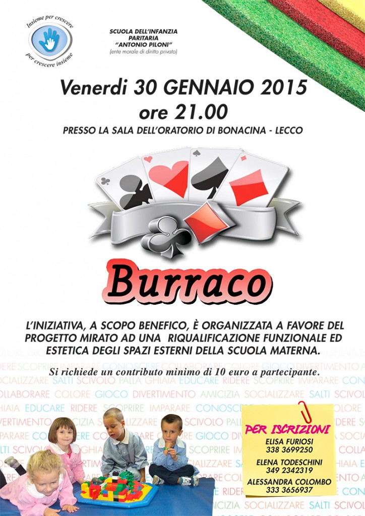 LECCO – Un torneo di Burraco a scopo benefico con l’obiettivo di finanziare i lavori di riqualificazione del cortile della scuola A. Piloni di Bonacina.