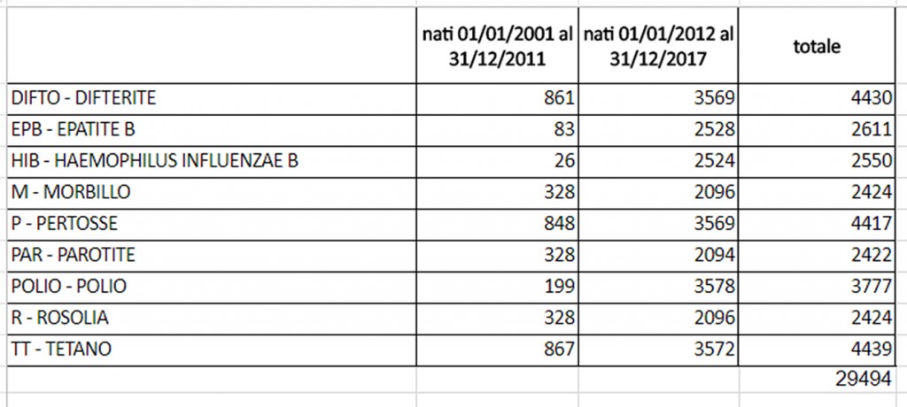 Per quanto riguarda le primarie invece, delle 210 scuole e istituti comprensivi presenti sul territorio, 19 hanno inviato gli elenchi sullo stato vaccinale. Gli alunni che non hanno presentato documentazione sono stati 642.