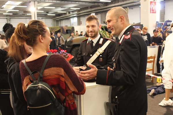 Per gli interessati alle opportunità di carriera nelle Forze dell’Ordine sono a disposizione gli stand dell’Aeronautica e della Marina Militare, dell’Arma dei Carabinieri, dell’Esercito Italiano, della Guardia di Finanza e della Polizia di Stato; le conferenze e laboratori dedicati alla professione nelle Forze Armate saranno affidate allo Stato Maggiore della Difesa. Proprio per questo, alla presentazione di venerdì, è intervenuto il maggiore Matteo Lualdi, referente dell’Esercito Italiano.