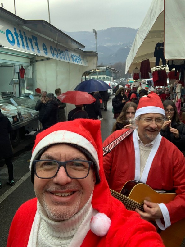 Il loro percorso musicale ha toccato alcuni dei luoghi più significativi della comunità: dal Bar Café Noire, accolti con grande calore da Romana e Maurizio, al distributore Barocelli dove Massimo e Fabio hanno applaudito con entusiasmo l’iniziativa. Non è mancata una tappa speciale alla scuola dell’infanzia di Foppenico, dove i più piccoli hanno ascoltato incantati le melodie natalizie, così come al Liceo Rota, al mercato cittadino e al Bar Milano, coinvolgendo cittadini di tutte le età.
