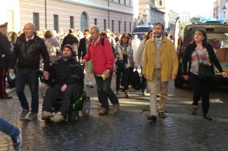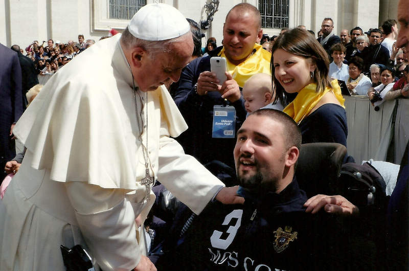 Nel pulmino partito alla volta del Vaticano, ad accompagnare Fabrizio, c’erano papà Gerolamo e zio Angelo (volti noti per il loro impegno con Telethon Lecco, Uildm Lecco e Polisportiva Monte Marenzo), con Gabriele Bolis, Giovanni Pozzi e Pierangelo Ghislanzoni. Indelebile nel ricordo di tutti quella giornata con Papa Francesco, che, accarezzando Fabrizio, disse: “Pregate per me”.