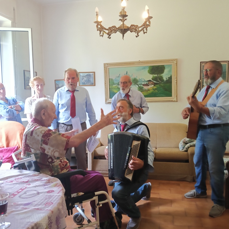 A rendere ancora più speciale la giornata, la presenza musicale del gruppo “Gabriele e i suoi Amici”, che ha regalato un momento di “musicoterapia” eseguendo brani del passato, tanto cari agli ospiti della Casa di Riposo. Luigi, da sempre amante del canto (anche se ammette di non essere proprio intonato), non ha resistito: si è unito ai canti, accompagnato dalla chitarra del figlio Renato, chiedendo alcuni dei suoi pezzi preferiti.