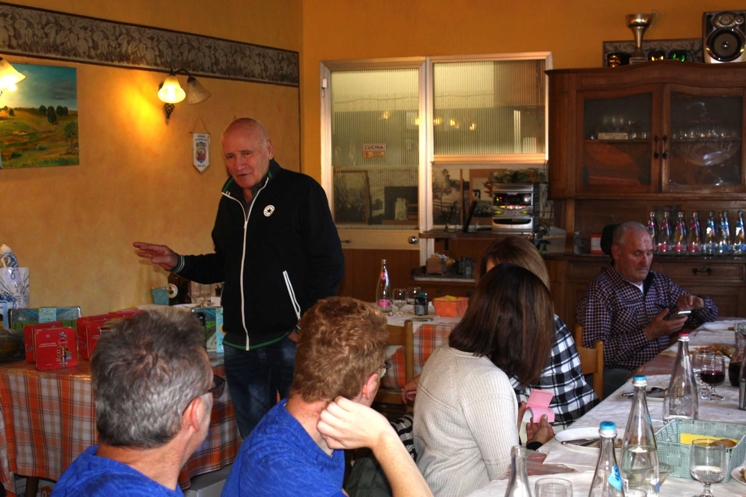 Prima di entrare nella trattoria, è stata scattata la foto di gruppo: Mauro Tagliaferri ha esposto un cartellone con la scritta “Ciao Demetrio, ti aspettiamo l’anno prossimo a Morterone”. Demetrio, che da oltre dieci anni fa parte del gruppo dei camminatori Telethon, è solito percorrere a piedi la tratta Monte Marenzo–Morterone–Monte Marenzo. Lo scorso 28 settembre, è caduto per circa 15 metri dal campanile di Val Montanaia (provincia di Pordenone). Trasportato in elicottero all’ospedale di Udine, ora è a casa: ha riportato alcune fratture, ma sta bene.