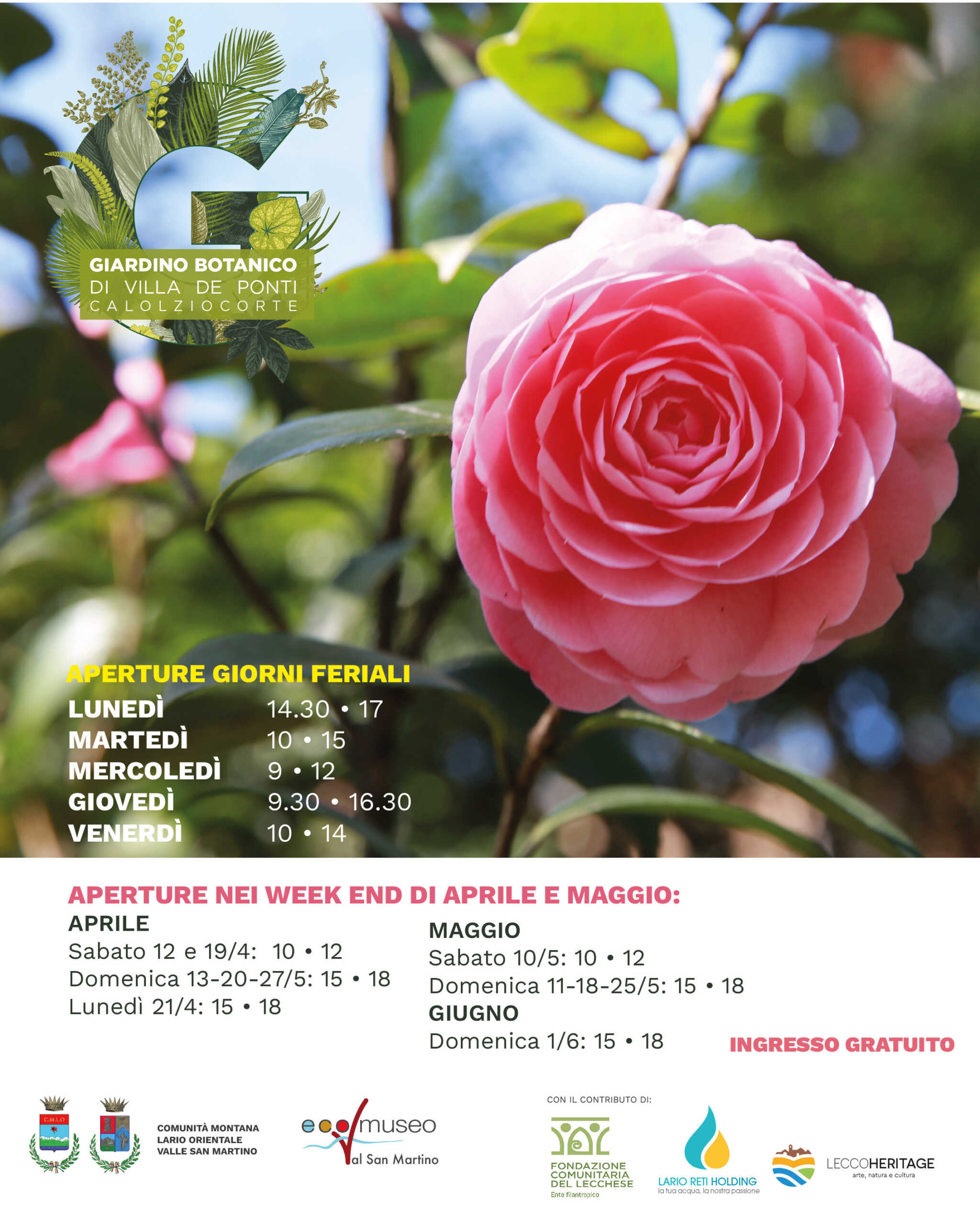 CALOLZIOCORTE – Da fine marzo è iniziata l’apertura nei fine-settimana del Giardino Botanico di Villa de Ponti a Calolziocorte, per permettere ai visitatori di ammirare le variegate collezioni fiorite di camelie, tulipani e le numerosissime orchidee da campo, ricomparse da qualche anno nella chiaria erbosa.