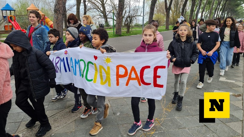 Dopo gli interventi, ci sono state le testimonianze e le riflessioni degli alunni più grandi, quindi i canti, mentre i più piccoli sono stati coinvolti in laboratori dal titolo ‘Lasciamo un segno’ durante i quali hanno realizzato 11 mandala della pace nel parco del Lavello, mentre il camminamento pedonale antistante i campi sportivi è stato colorato con gessetti e parole di pace.