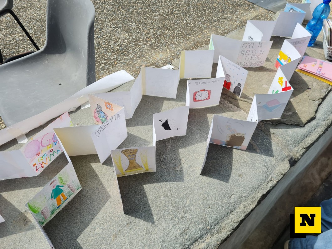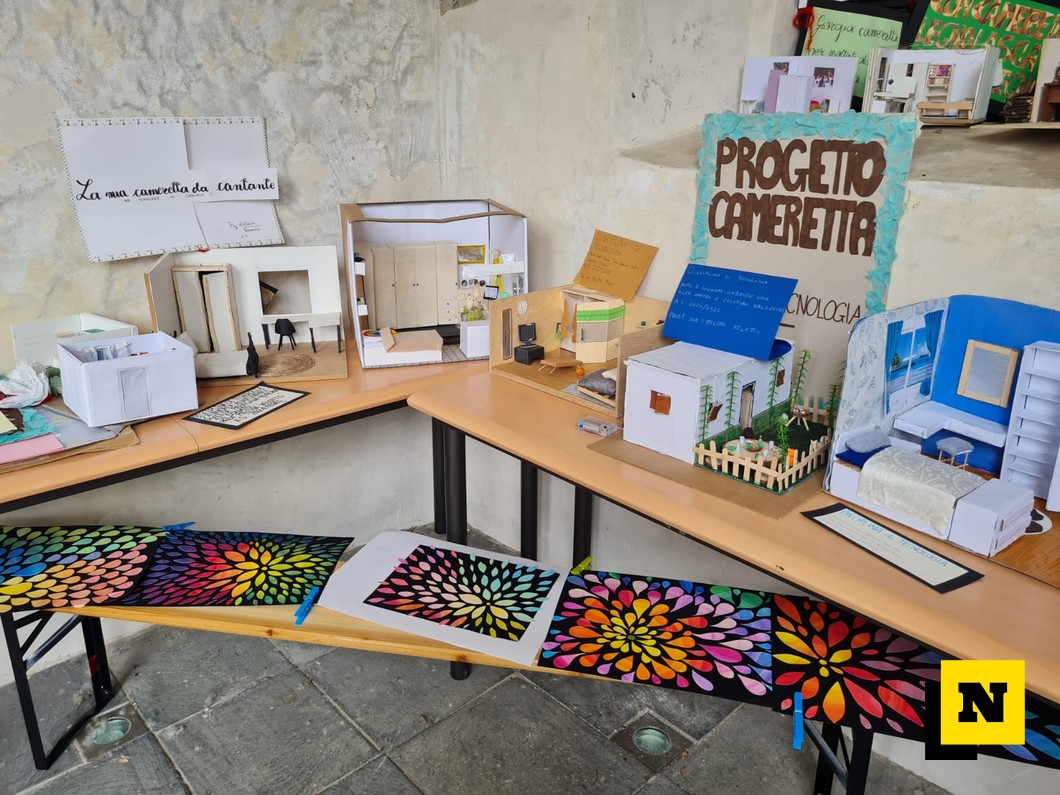 I lavori esposti riguardano le varie attività svolte durante l’anno declinate sulle diverse discipline scolastiche ma, al di là dei contenuti, la cosa più bella è che sono gli stessi ragazzi a fare da ciceroni ai visitatori della mostra, sfoderando una passione e un entusiasmo che ha lasciato tutti di stucco. Gli studenti ci hanno accompagnato con spiegazioni estremamente dettagliate in un viaggio interessante e ricco di spunti: disegni, plastici, testi scritti, video, ricerche, spettacoli teatrali…