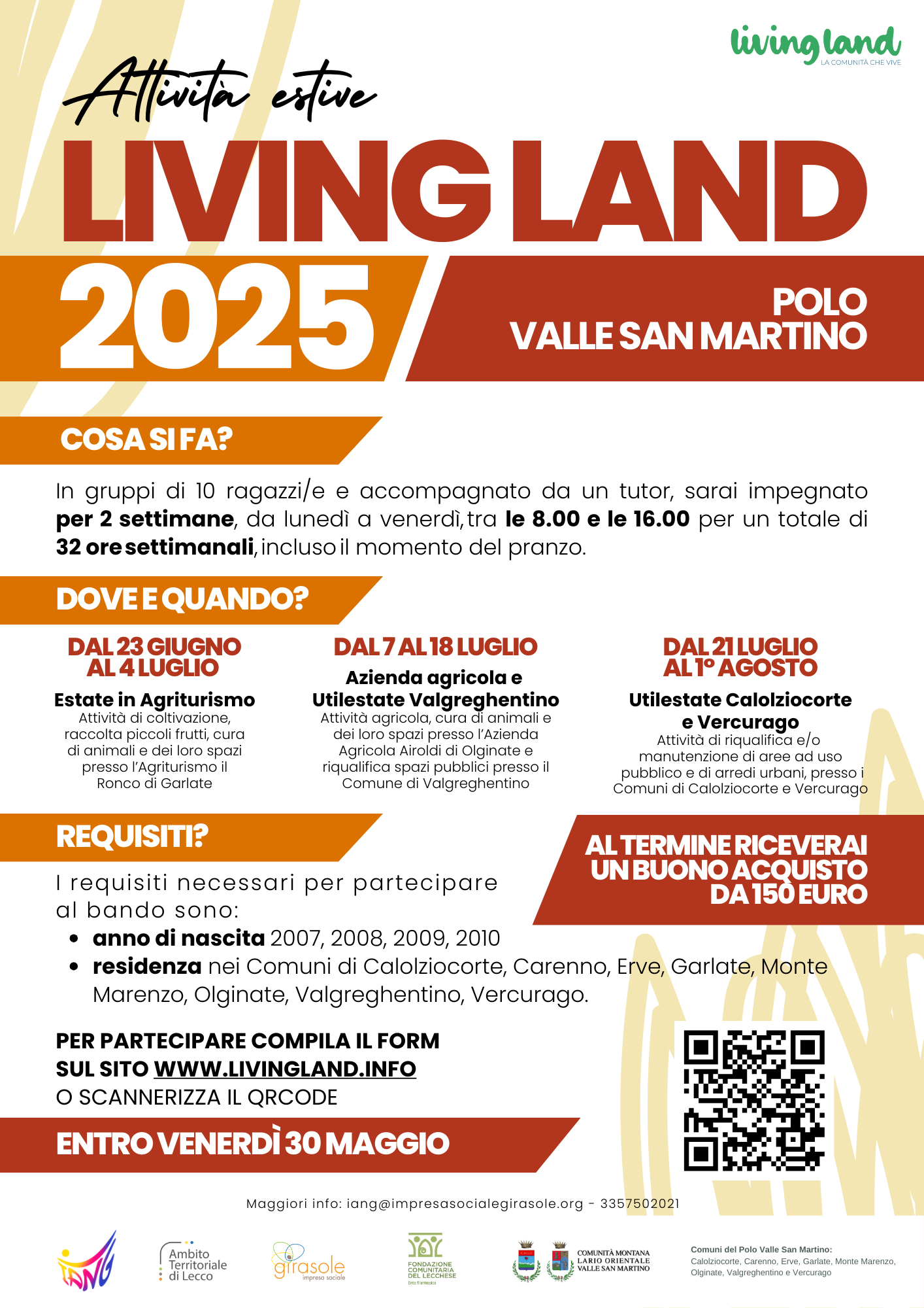 CALOLZIO – Torna anche per quest’estate il progetto Living Land con tante attività previste presso il Polo Valle San Martino.