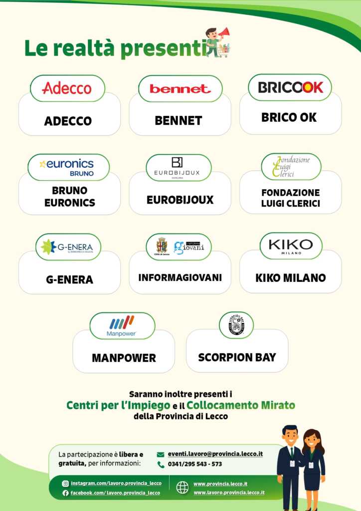 Erano presenti aziende come Adecco, Bennet, Brico Ok, Bruno Euronics, Fondazione Luigi Clerici, G-Enera, Il Mille, Kiko Milano, Manpower e Scorpion Bay, a testimonianza della forte domanda di personale nel comparto retail.