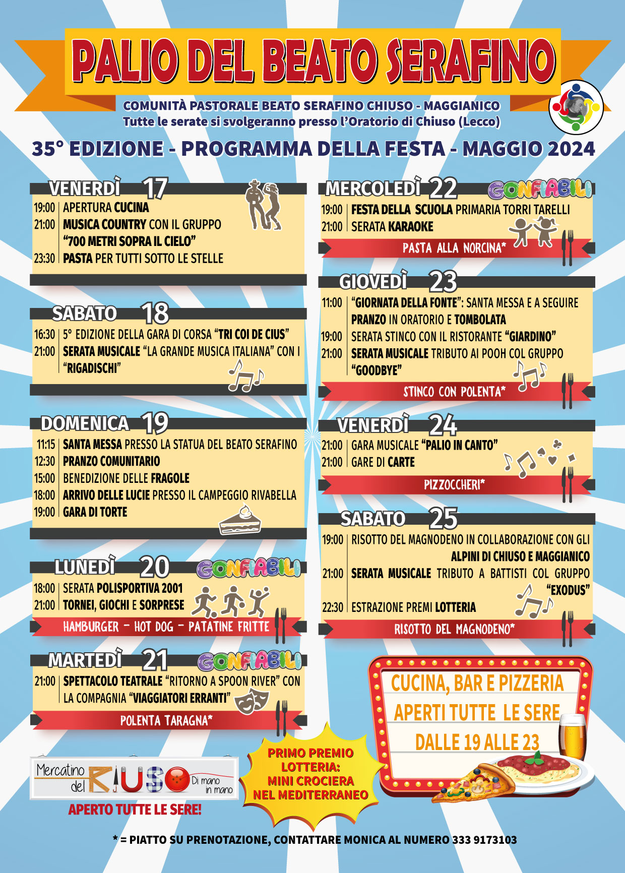 LECCO – Quello che si tiene nel rione di Chiuso a Lecco, dal 17 al 25 maggio, si chiama ancora Palio del Beato Serafino, anche se non gareggia più nessuno.