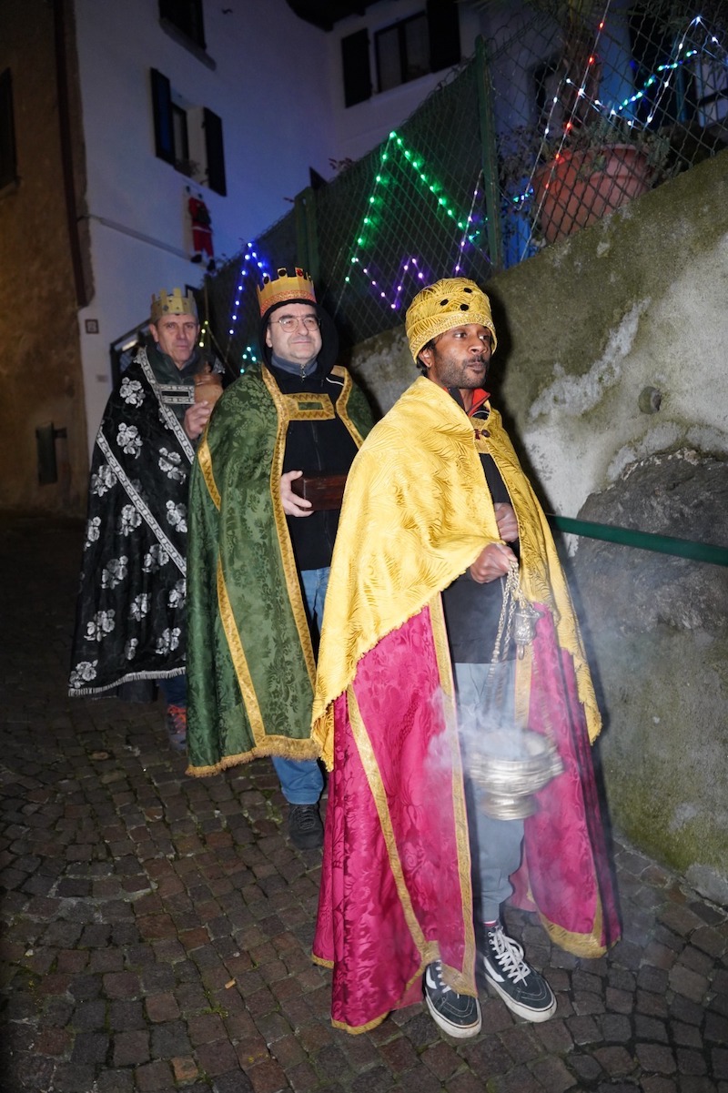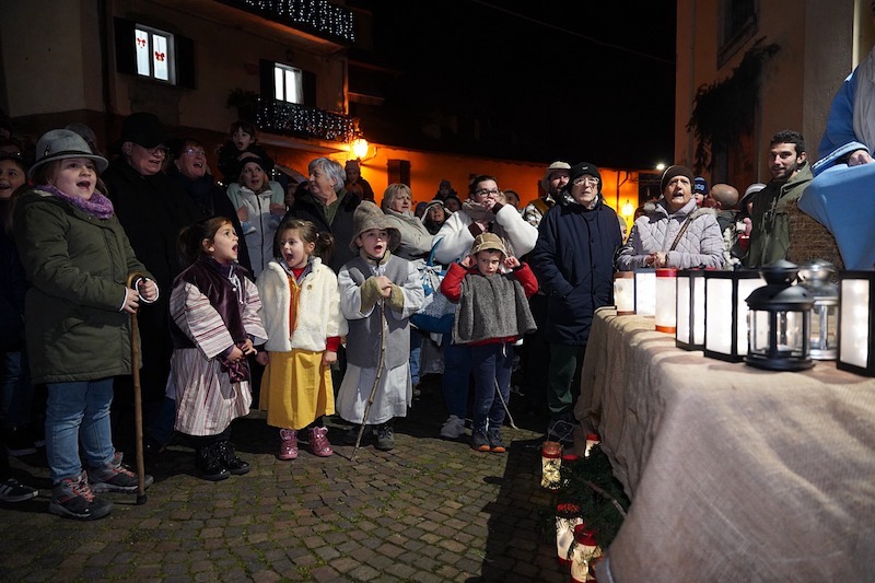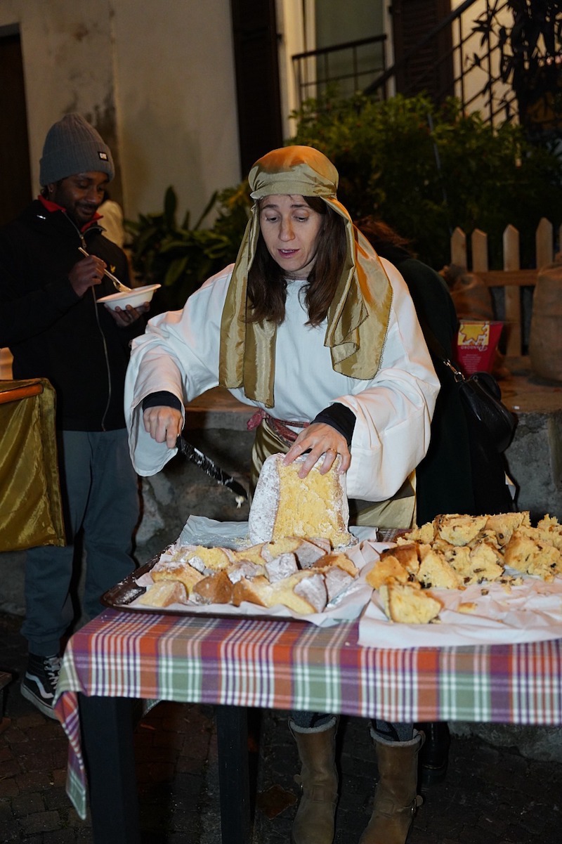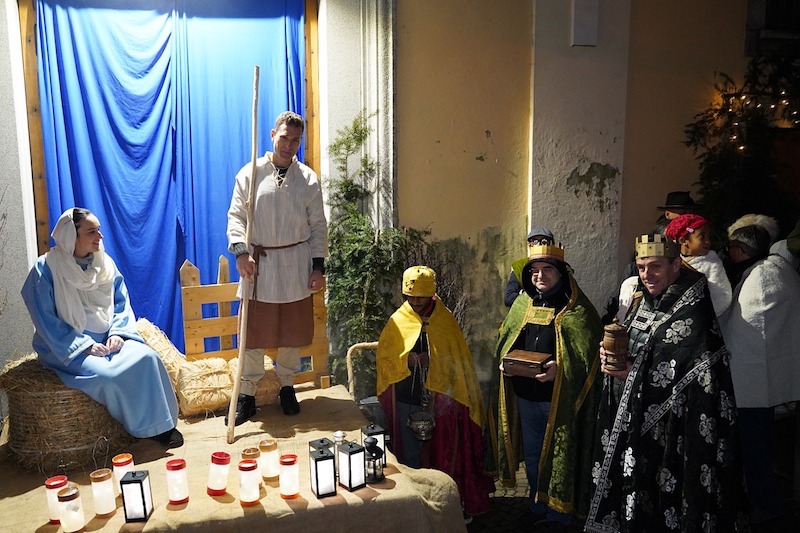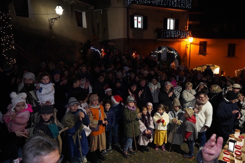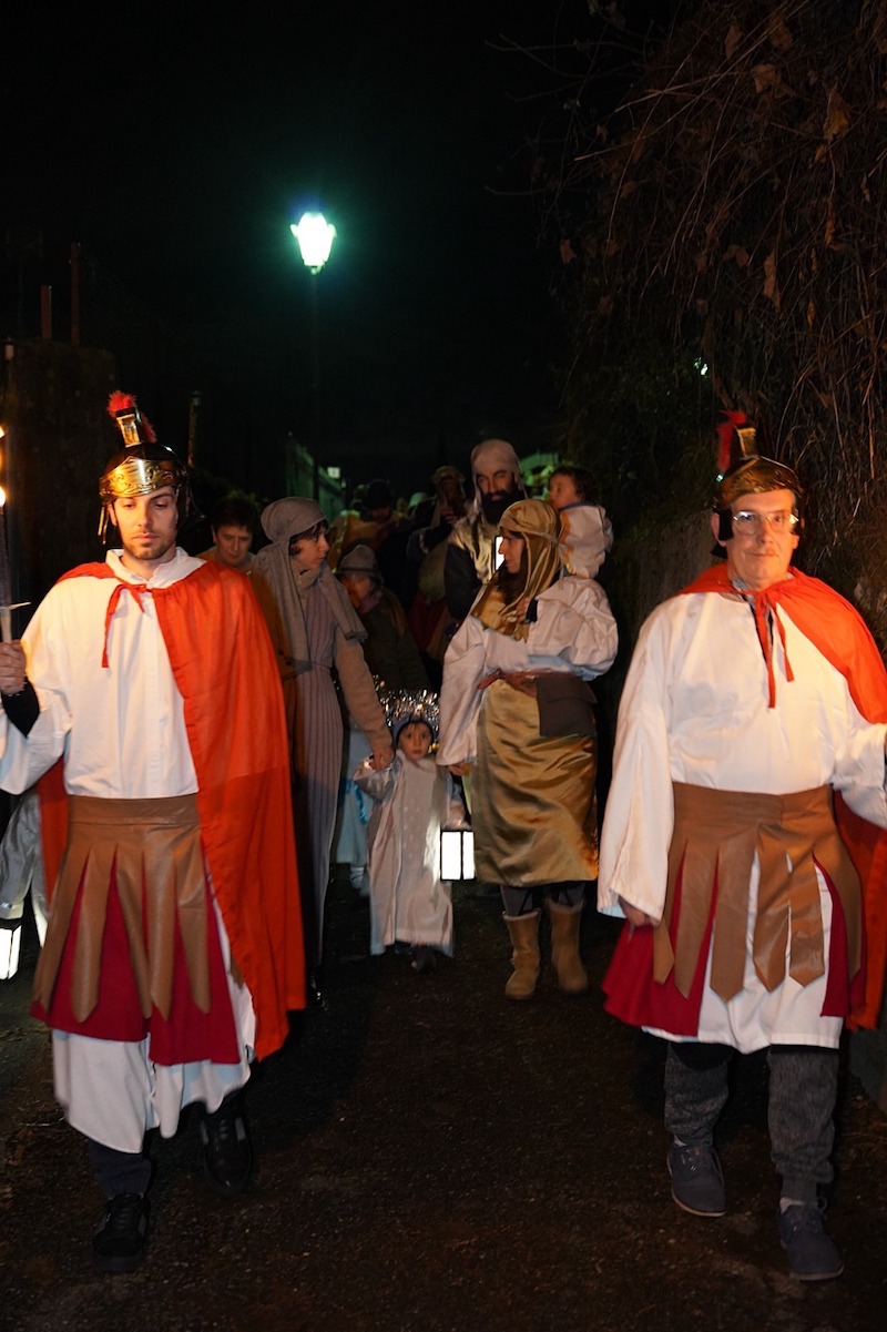 Un’illuminante Maria e un ammirevole Arcangelo hanno guidato il percorso sacro, accompagnati da radianti figure, figuranti in costume e musicisti che, con le loro melodie, hanno saputo catturare l’attenzione e il cuore del pubblico presente. Ogni scena ha contribuito a creare un’atmosfera intensa e coinvolgente, capace di riportare grandi e piccoli al vero spirito del Natale.