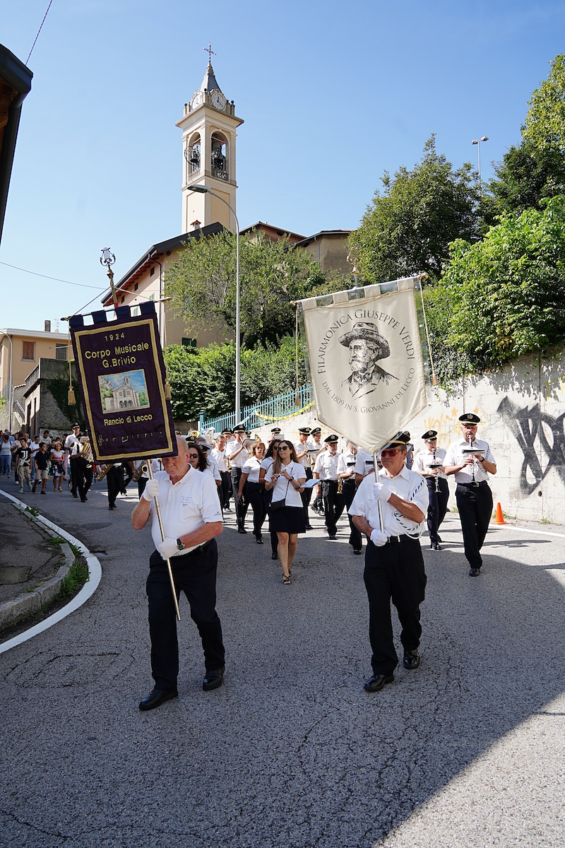 La celebrazione è stata un momento intenso e partecipato, arricchito dalla presenza di numerosi fedeli e dalla partecipazione del Sindaco di Lecco Mauro Gattinoni. Ad accompagnare la cerimonia hanno contribuito le note musicali delle bande Verdi e Brivio, insieme ai Firlinfeu, che hanno reso l’atmosfera ancora più solenne e festosa.