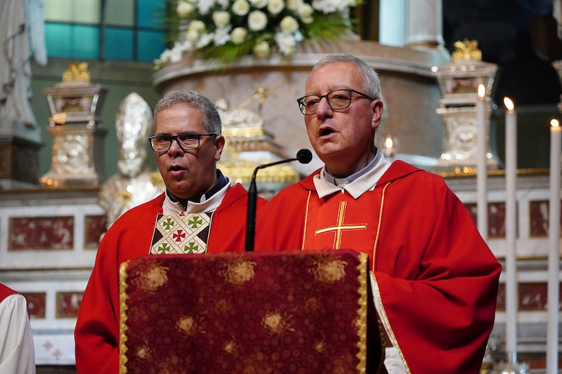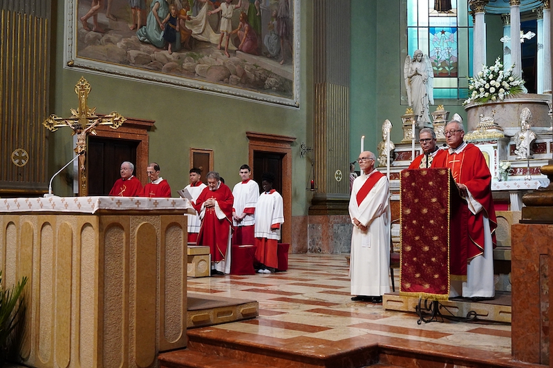 LECCO – La comunità parrocchiale di Lecco Alta (che unisce San Giovanni, Rancio e Laorca) si è riunita questa mattina alle ore 10.30 per la Santa Messa di saluto al parroco uscente don Claudio Maggioni, fino a oggi Responsabile della Comunità Pastorale, e a don Giuseppe Pellegrino, vicario parrocchiale di Rancio e responsabile della pastorale giovanile.