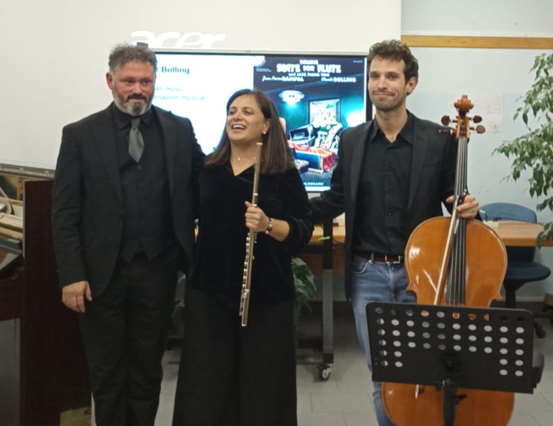 La sera di giovedì 14 novembre si è tenuta con successo una lezione-concerto con i professori Emanuela Milani al flauto traverso, Michele Santomassimo al pianoforte e Pietro Cottica al violoncello. I docenti hanno studiando e approfondito brani e tematiche appassionanti al fine di condividere poi con gli ascoltatori la curiosità e l’interesse per tutto ciò che la musica può rappresentare.