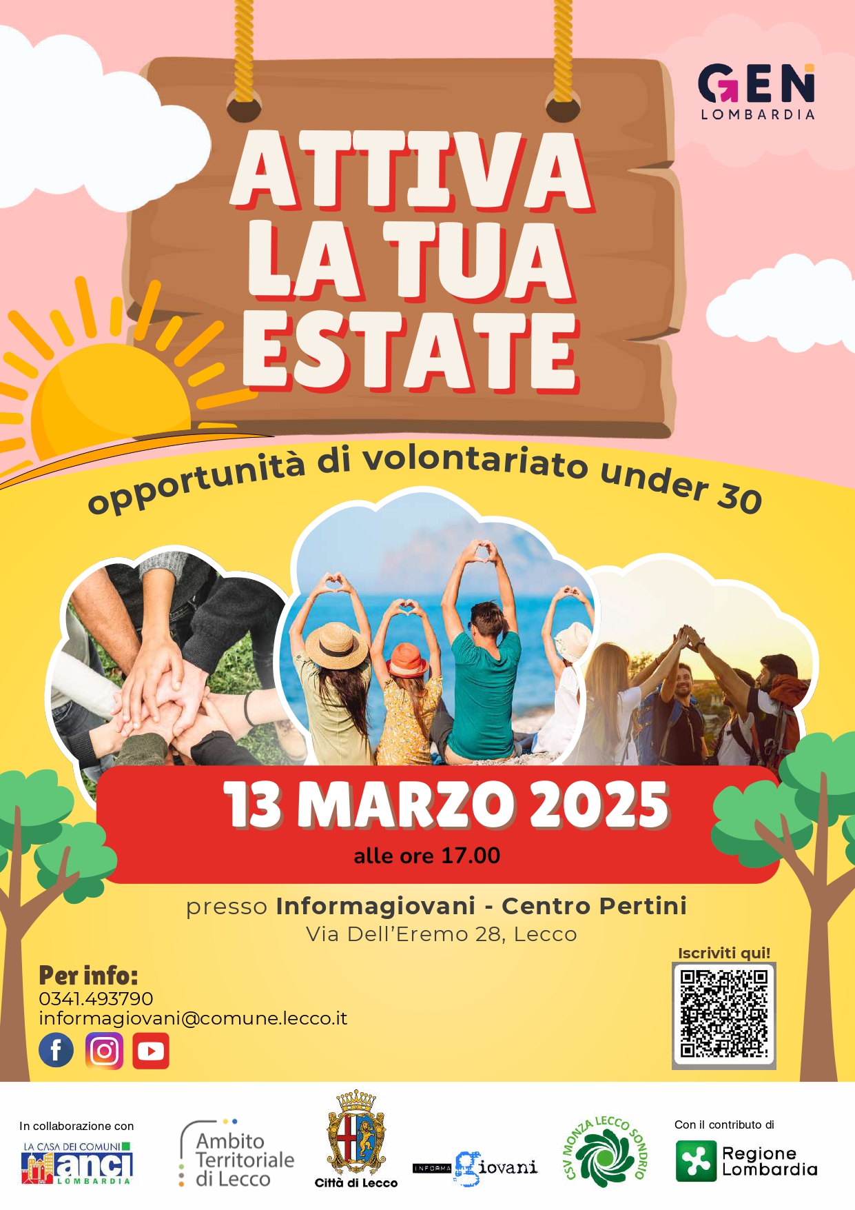 “Attiva la tua estate” fa parte del progetto “Rumore: frequenze di innovazione”, promosso da Informagiovani Lecco nell’ambito del bando regionale “La Lombardia è dei giovani 2024”, realizzato in collaborazione con Anci Lombardia e finanziato da Regione Lombardia.