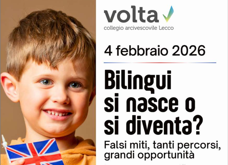 LECCO – Un incontro aperto al pubblico per fare chiarezza sul bilinguismo, tra convinzioni diffuse e dati scientifici aggiornati. Mercoledì 4 febbraio, alle 20.30, il Collegio Arcivescovile Volta di Lecco ospiterà la serata dal titolo “Bilingui si nasce o si diventa? Falsi miti, tanti percorsi, grandi opportunità”, pensata per approfondire cosa significhi davvero crescere e diventare bilingui.
