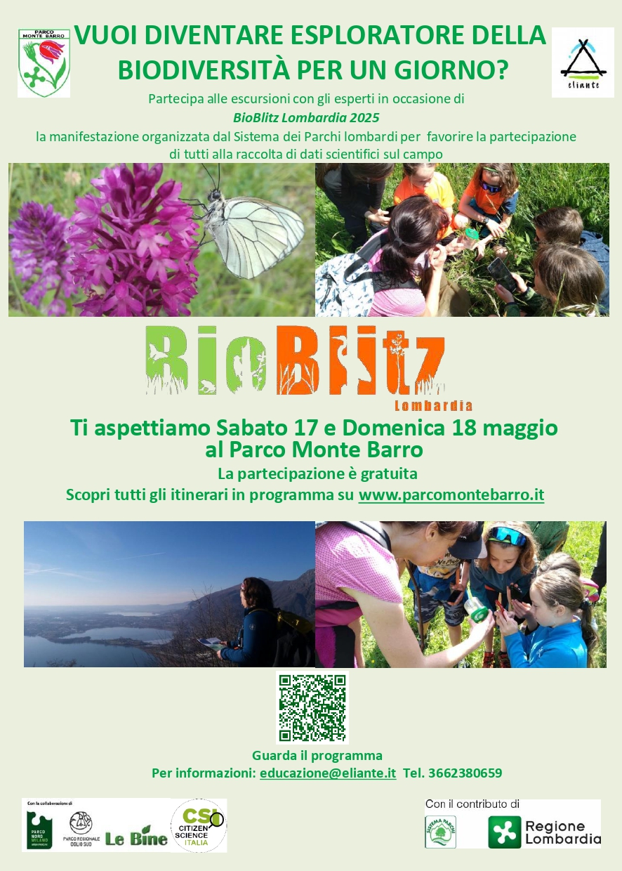 GALBIATE – Il Parco Monte Barro, insieme a oltre 50 tra aree protette, riserve, parchi e PLIS, aderisce alla decima edizione di “BioBlitz – Esploratori della Biodiversità per un giorno“, l’evento, per bambini e per adulti, di educazione e sensibilizzazione naturalistica e scientifica.