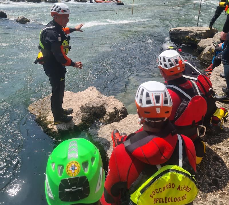 LECCO – Dal 20 al 22 giugno, il campo slalom di Valstagna, nel comune di Valbrenta (VI), ha ospitato una sessione di formazione riservata ai tecnici delle squadre forra del Corpo Nazionale Soccorso Alpino e Speleologico (CNSAS) provenienti da Lombardia, Trentino, Piemonte e Veneto. Un campo slalom è una sezione di torrente attrezzata con paletti e rocce per creare movimenti d’acqua specifici, usato per kayak, canoa, rafting e corsi di acque vive.