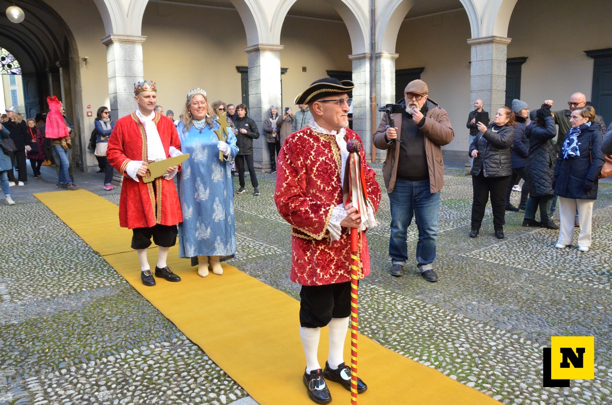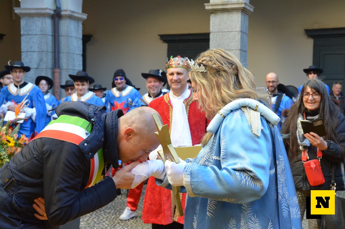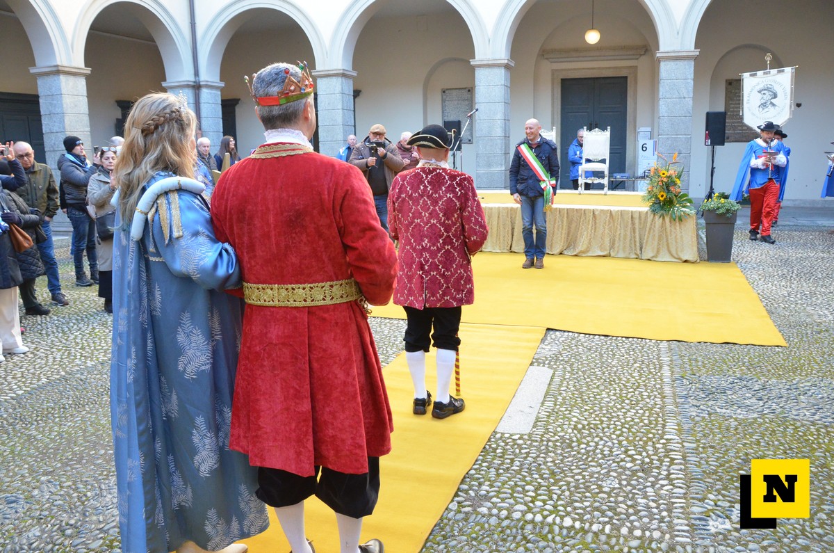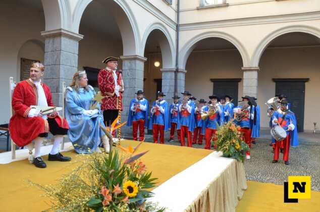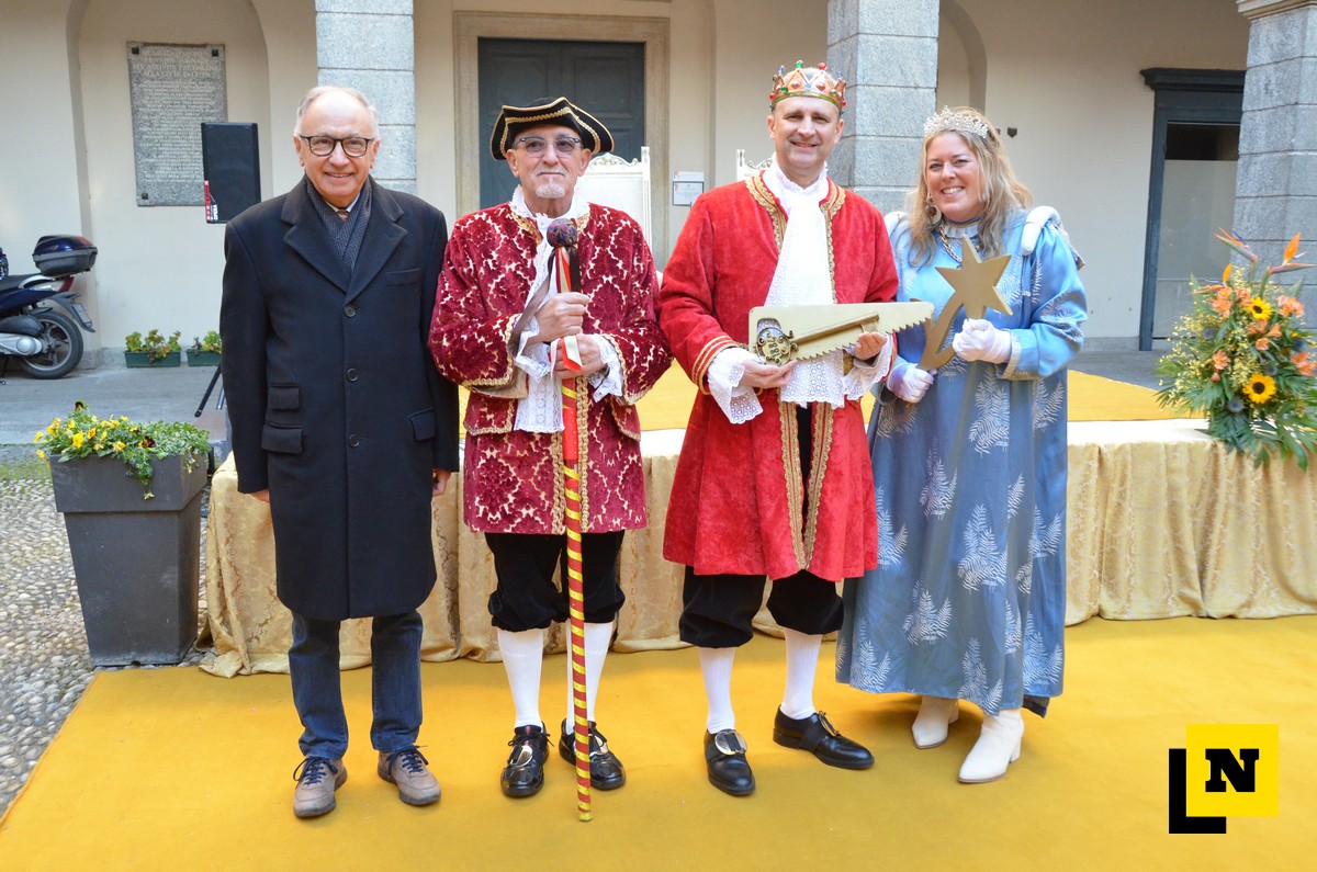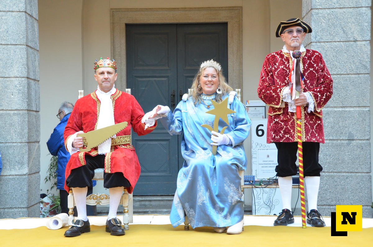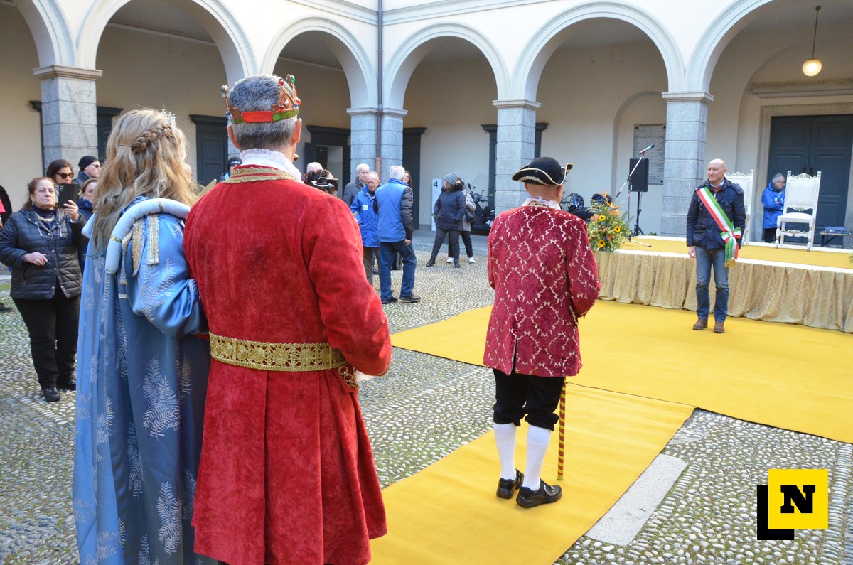 Andrea Vigevano (Re Resegone), Giovanna Faccilongo (Regina Grigna) e Rudi Egli (Gran Ciambellano) sono arrivati dal lago a bordo di una lucia e hanno ricevuto l’abbraccio caloroso del folto pubblico in piazza XX Settembre. I regnanti, accompagnati dalle note della Filarmonica Giuseppe Verdi di San Giovanni, hanno attraversato le vie del centro a bordo di una carrozza per giungere nel cortile del municipio dove si è svolta la cerimonia.