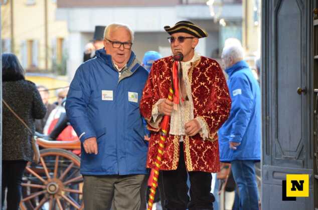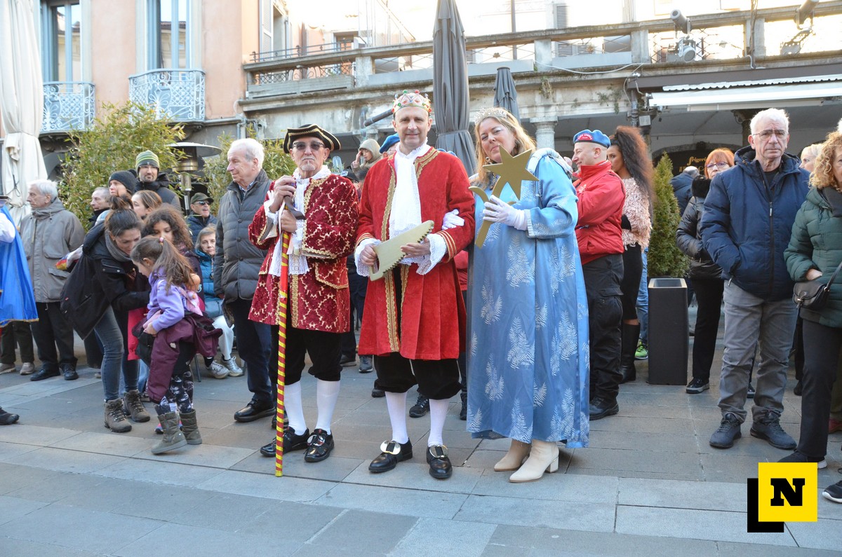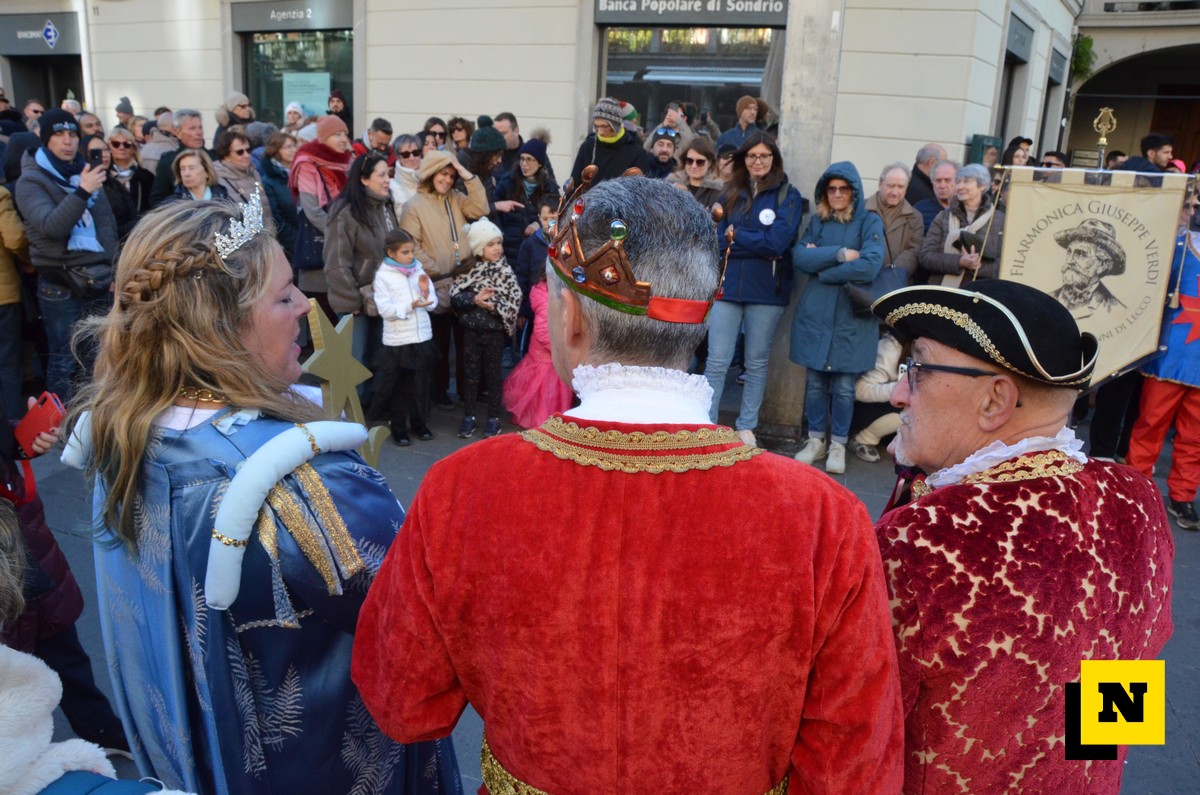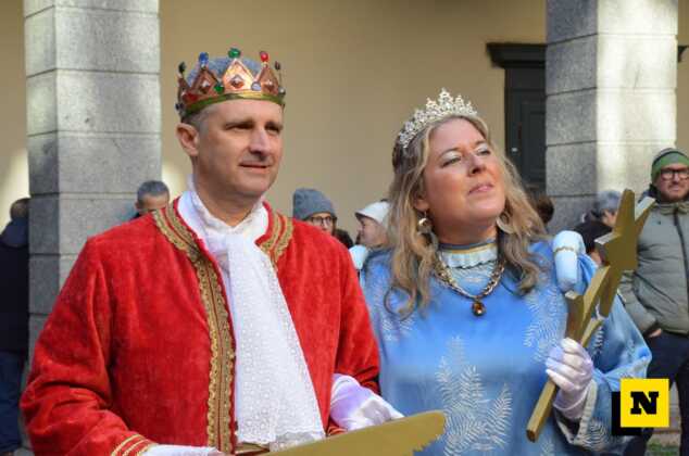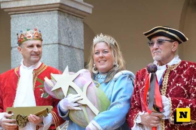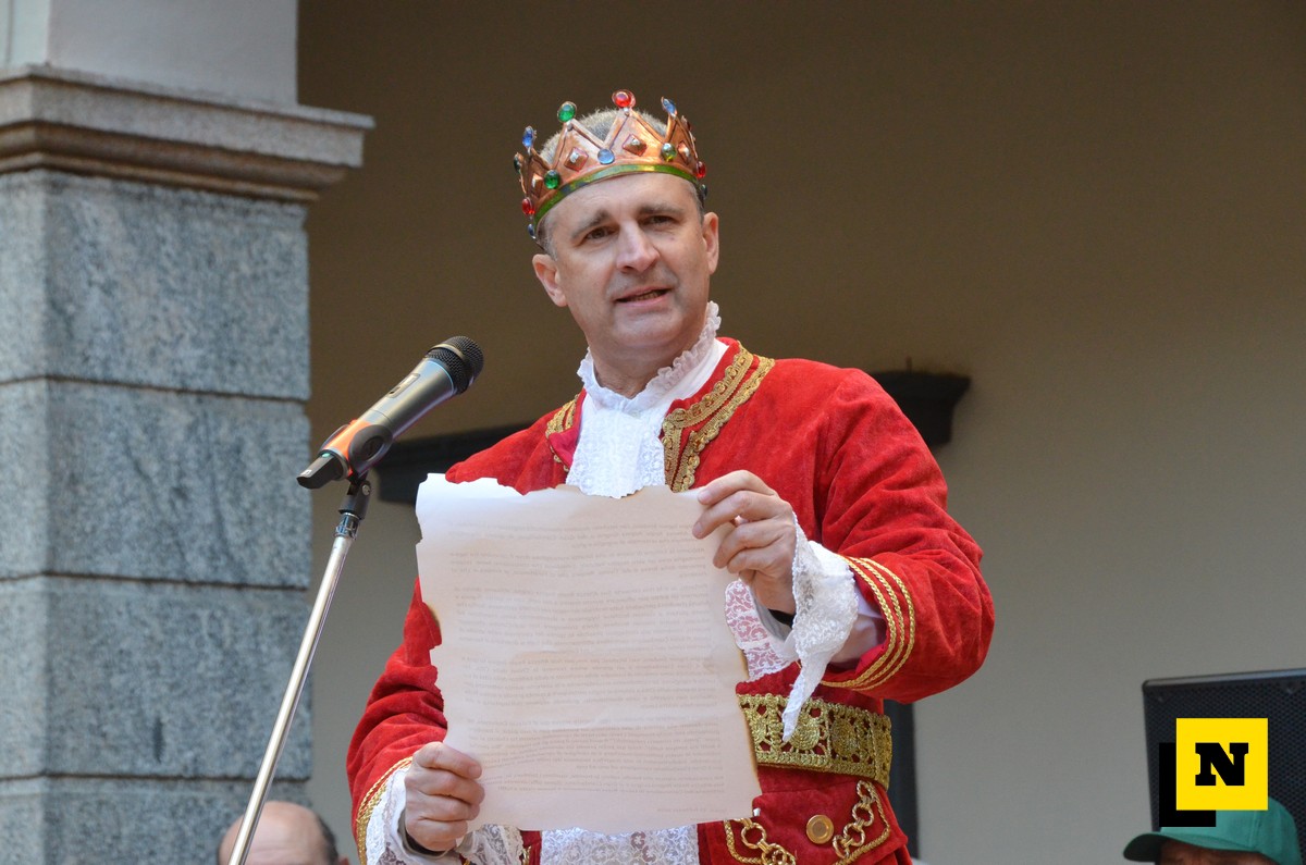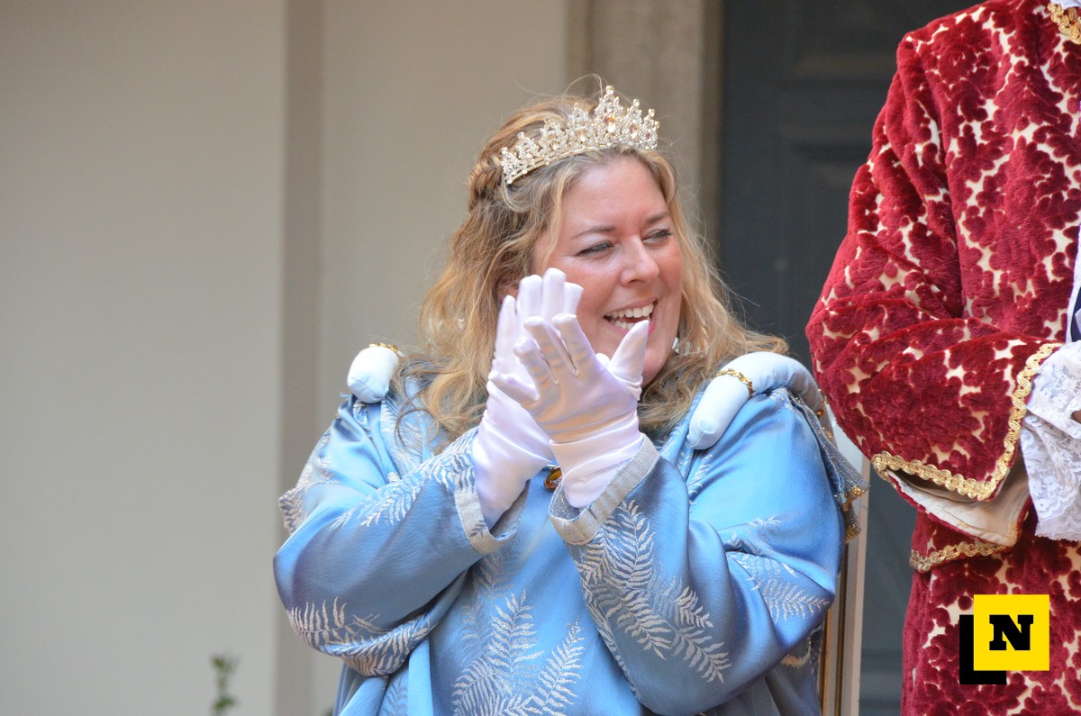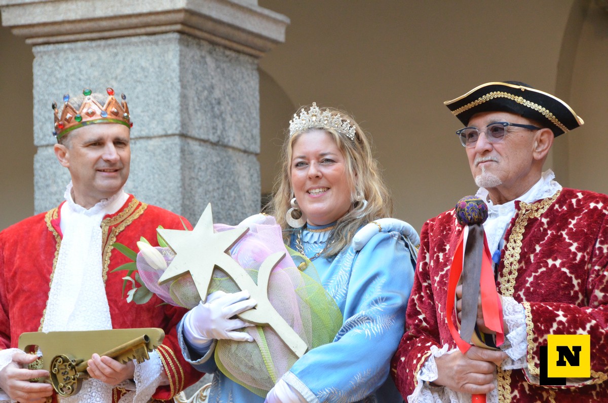 Andrea Vigevano (Re Resegone), Giovanna Faccilongo (Regina Grigna) e Rudi Egli (Gran Ciambellano) sono arrivati dal lago a bordo di una lucia e hanno ricevuto l’abbraccio caloroso del folto pubblico in piazza XX Settembre. I regnanti, accompagnati dalle note della Filarmonica Giuseppe Verdi di San Giovanni, hanno attraversato le vie del centro a bordo di una carrozza per giungere nel cortile del municipio dove si è svolta la cerimonia.