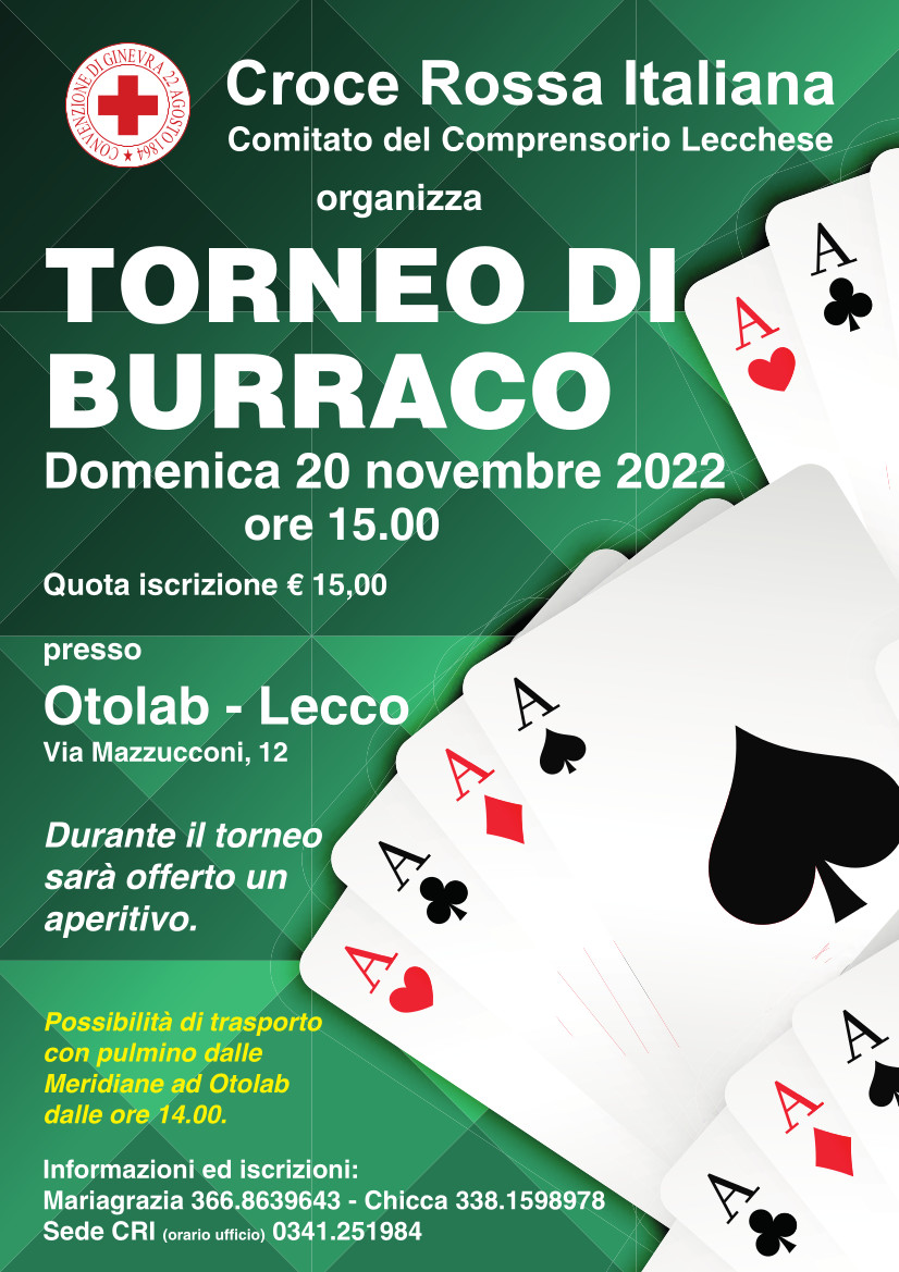 LECCO – La Croce Rossa Italiana di Lecco (comitato del comprensorio lecchese) organizza, per domenica 20 Novembre, un torneo di burraco solidale.